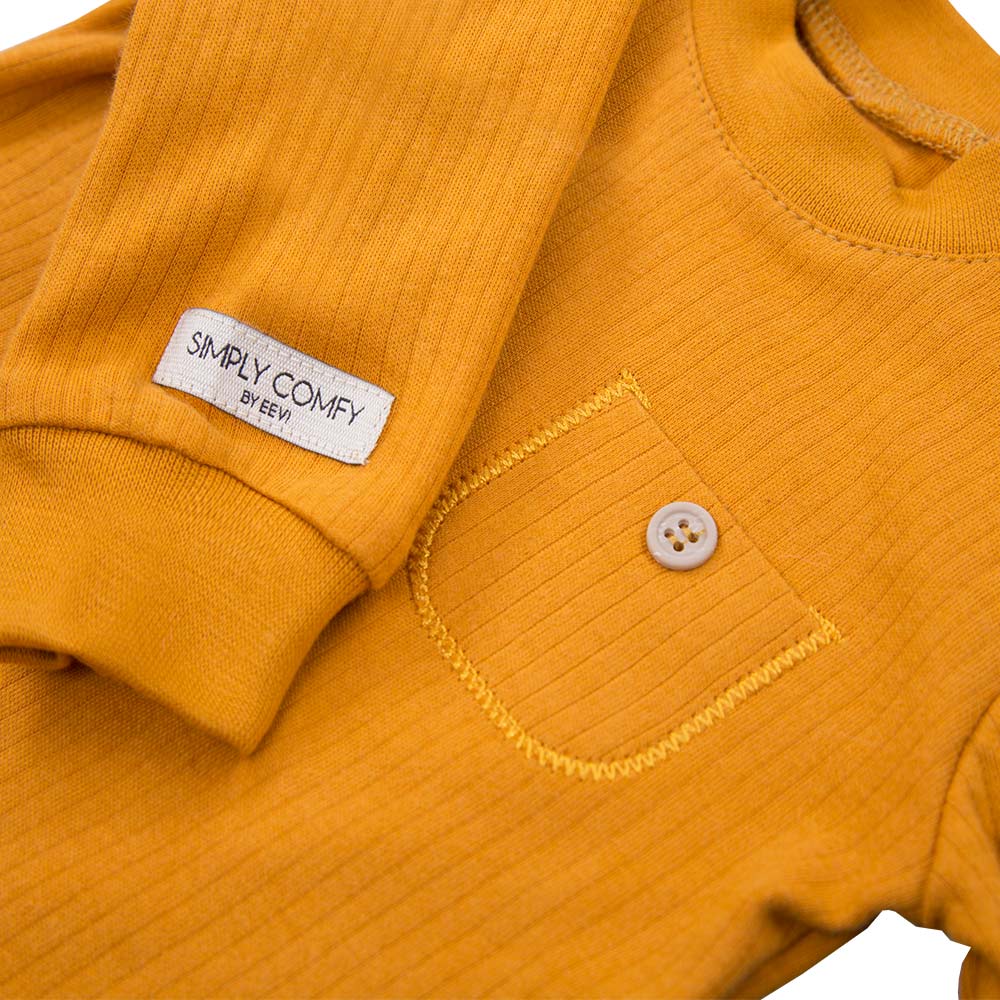Kinderbluse mit Tasche aus der Kollektion „SIMPLY COMFY“, genäht aus weichem und angenehm anzufassendem Baumwollstrick mit Rippmuster. Die Bluse ist mit einem weichen Bündchen versehen. Als dekoratives Element dient eine aufgenähte Tasche mit Knopf. Die Kinderbluse eignet sich ideal für Spaziergänge und zum Spielen auf dem Spielplatz. Zur Bluse passen Jogginghosen oder Baumwollhosen aus derselben Kollektion. Die Babykleidung von Eevi wird mit Blick auf den Komfort und die Sicherheit der Haut Ihres Kindes hergestellt. Warum vertrauen wir der Marke Eevi seit Jahren so sehr? Die Produkte werden mit Sorgfalt und unter Verwendung von Materialien höchster Qualität genäht. Bei der Herstellung von Babykleidung verwenden wir ausschließlich ökologische Farben, die für die Haut von Kindern und Babys unbedenklich sind. Die Stickereien in unseren Produkten sind von innen gesichert, damit sie die empfindliche Haut des Kindes nicht reizen. Alle Druckknöpfe und Verschlüsse, die wir in unseren Produkten verwenden, sind nickelfrei. Die von uns angebotene Kinder-Bluse ist zertifiziert: „Sicher für Kinder” „Sicher für Babys” Material: 100 % hochwertige Baumwolle Alter des Kindes: von 6 Monaten bis 4 Jahren PRODUKT 100 % POLNISCH
