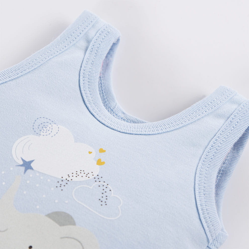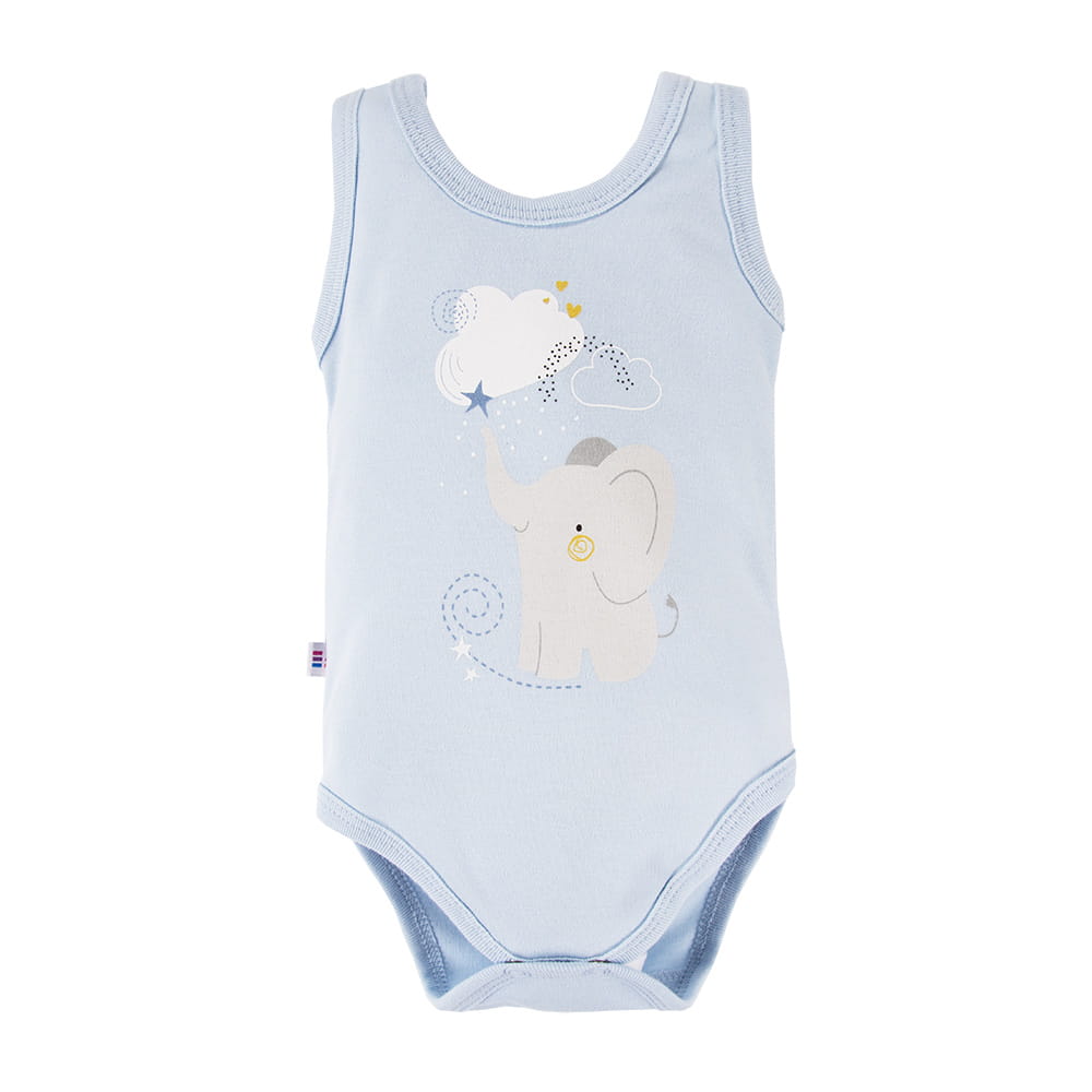 Ärmelloser Baby-Body blau mit Elefant – Kollektion Mellow