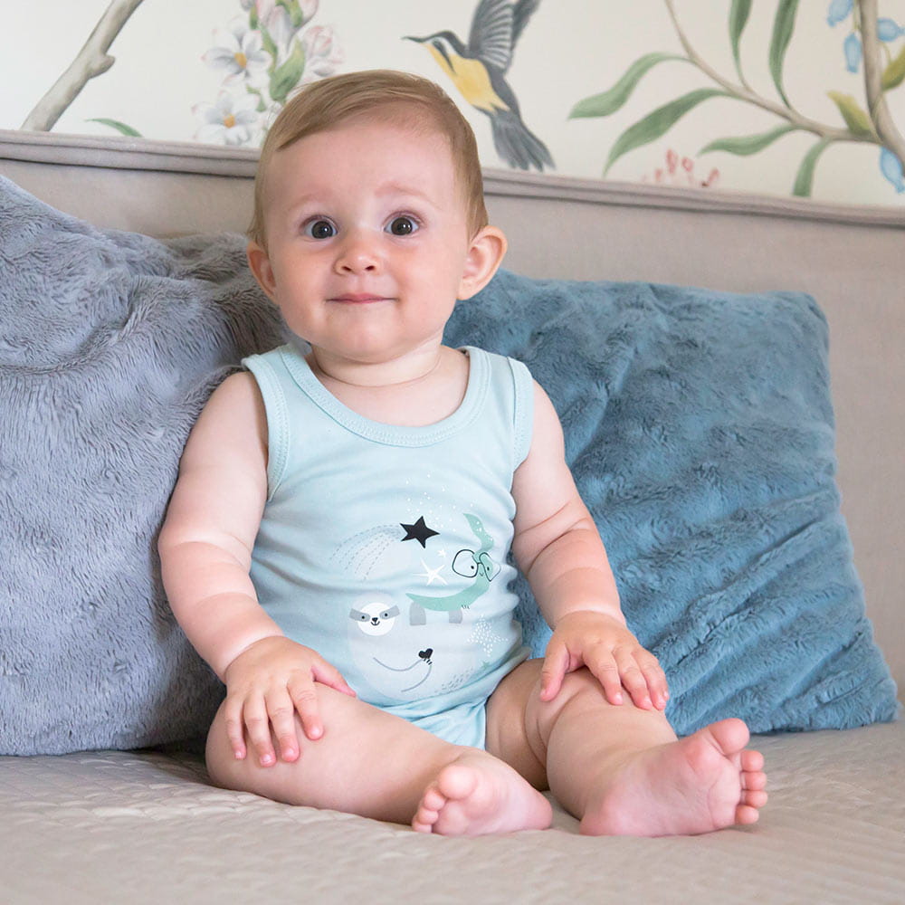 Ärmelloser Baby-Body mit Faultier – Kollektion Mellow