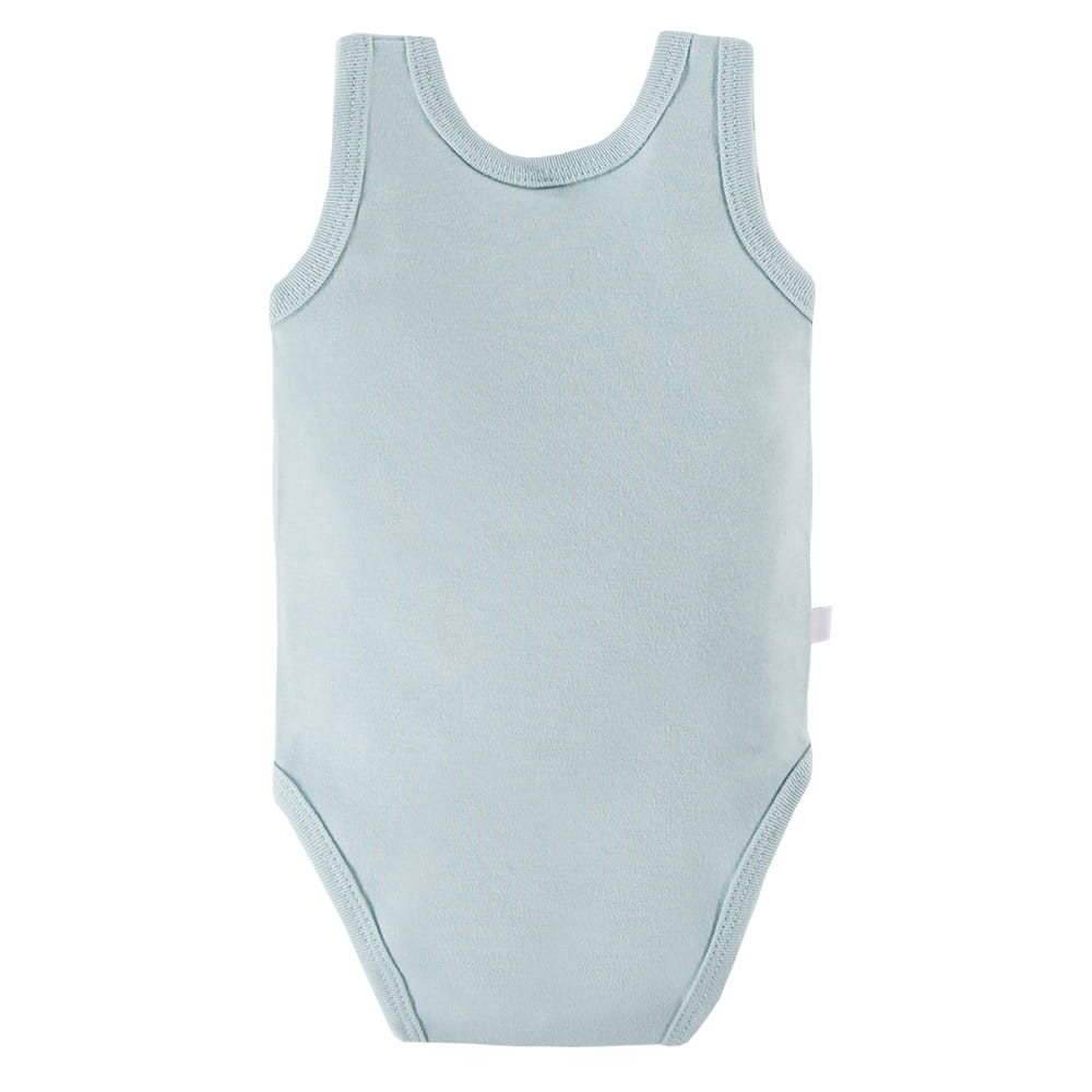 Ärmelloser Baby-Body aus der Mellow Kollektion in der Farbe Mint wurde aus weichem und angenehm zu tragendem Baumwollstrick gefertigt. Er bietet hohen Tragekomfort und ist sicher für die empfindliche Haut Ihres Babys. Auf der Vorderseite befindet sich ein süßes Faultiermotiv, das dem Body einen liebevollen, kindlichen Charakter verleiht.