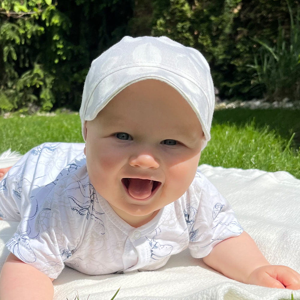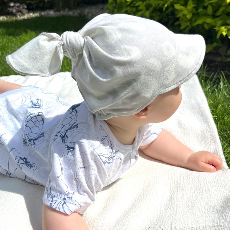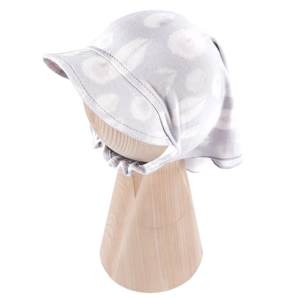 Kinder-Kopftuch aus Bambusviskose, sehr einfach anzulegen. Weich und bequem, für jedes Kind geeignet. Größen: S: 16,5 - 18,5 cm, M: 18,5 - 21 cm, L: 21–23,5 cm Material: 100 % Bambusviskose Struktur/Materialart: Stoff Pflegehinweise: Maschinenwäsche bei 40 °C, nicht im Wäschetrockner trocknen Muster: Graue Federn Verarbeitung: Elastischer Tunnelzug Herkunft: 100 % polnisches Produkt Zertifikate: „Sicher für Kinder”, „Sicher für Babys” Die Babykleidung von Eevi wird mit Blick auf den Komfort und die Sicherheit der Haut Ihres Kindes hergestellt. Warum vertrauen wir der Marke Eevi seit Jahren so sehr? Die Produkte werden mit Sorgfalt und unter Verwendung von Materialien höchster Qualität genäht. Bei der Herstellung von Babykleidung verwenden wir ausschließlich ökologische Farben, die für die Haut von Kindern und Babys unbedenklich sind. Die Stickereien in unseren Produkten sind von innen gesichert, damit sie die empfindliche Haut des Kindes nicht reizen. Alle Druckknöpfe und Verschlüsse, die wir in unseren Produkten verwenden, sind nickelfrei.