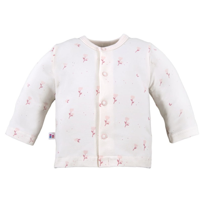 Dank der Druckknöpfe über die gesamte Länge kann das Jäckchen leicht an- und ausgezogen werden, was die tägliche Pflege erleichtert. Lange Ärmel sorgen für Wärme, und die weiche Einfassung schützt die empfindliche Haut vor Reizungen.