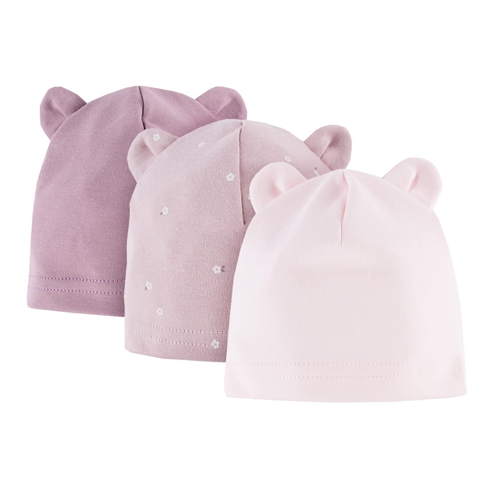 Kinder-Mützen 3er-Pack mit Ohren rosa, violett