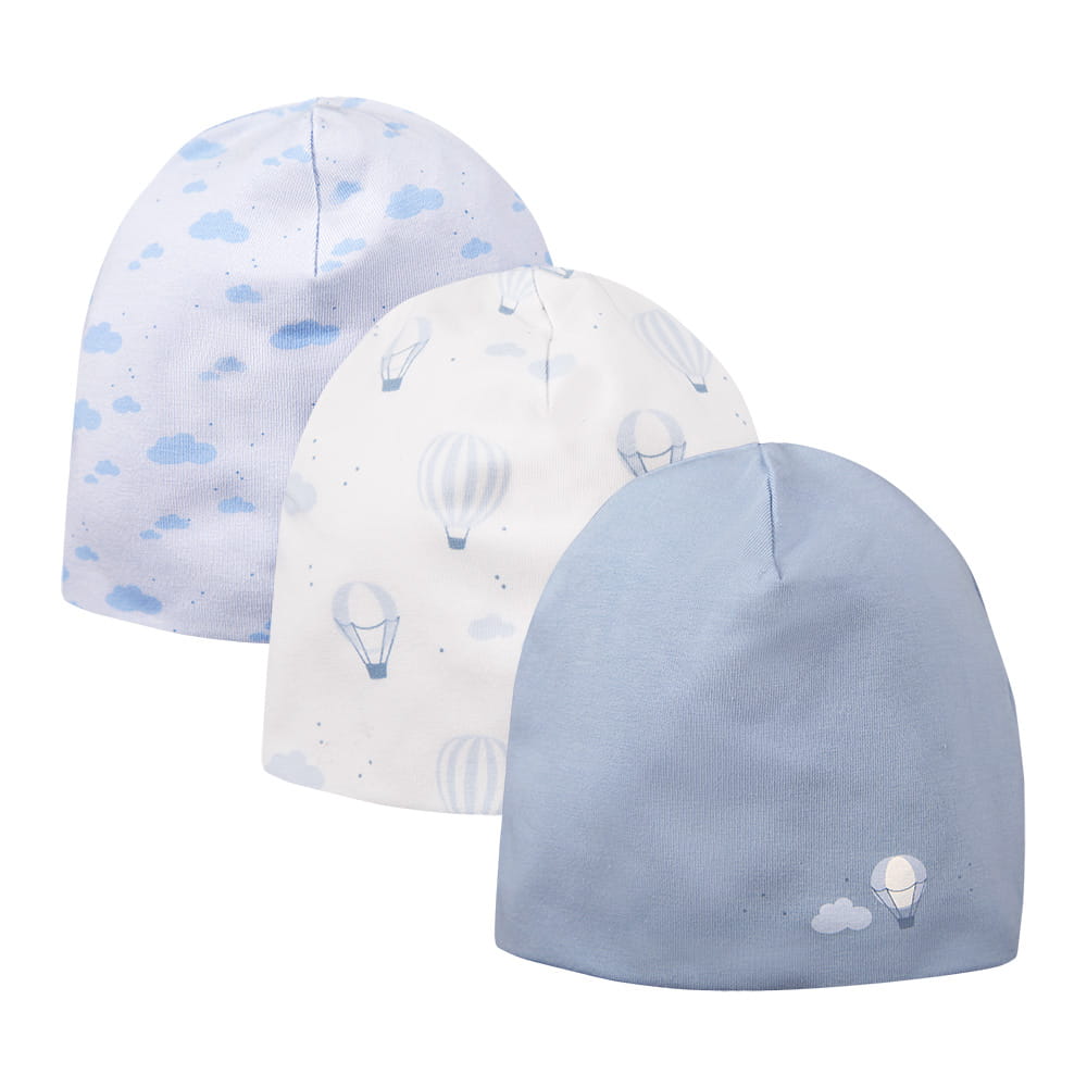 3er-Pack Kinder-Mützen aus weichem und angenehm zu tragendem Baumwollstrick. Der Elasthananteil sorgt für eine perfekte Passform am Kopf des Kindes. Die Mützen sind mit zarten Ballon- und Wolkenmotiven verziert. Alter des Kindes: Von 0 bis 6 Monaten Kollektion: PETITE Material: 95 % hochwertige Baumwolle, 5 % Elasthan Struktur/Materialart: Strickware Pflegehinweise: Maschinenwäsche bei 40 °C, nicht im Wäschetrockner trocknen Muster: Farbe – weiß/blau Herkunft: 100 % polnisches Produkt Zertifikate: „Sicher für Kinder”, „Sicher für Babys” Die Babykleidung von Eevi wird mit Blick auf den Komfort und die Sicherheit der Haut Ihres Kindes hergestellt. Warum vertrauen wir der Marke Eevi seit Jahren so sehr? Die Produkte werden mit Sorgfalt und unter Verwendung von Materialien höchster Qualität genäht. Bei der Herstellung von Babykleidung verwenden wir ausschließlich ökologische Farben, die für die Haut von Kindern und Babys unbedenklich sind. Die Stickereien in unseren Produkten sind von innen gesichert, damit sie die empfindliche Haut des Kindes nicht reizen. Alle Druckknöpfe und Verschlüsse, die wir in unseren Produkten verwenden, sind nickelfrei.