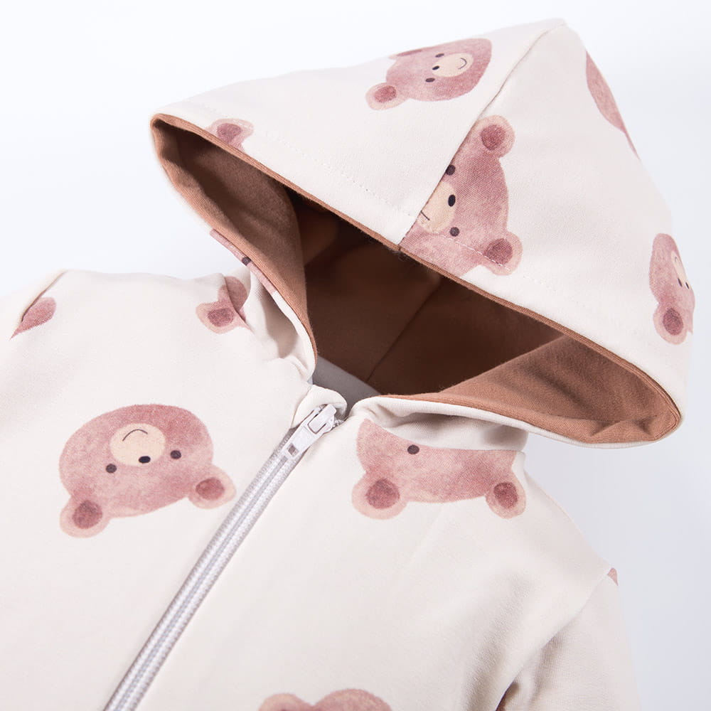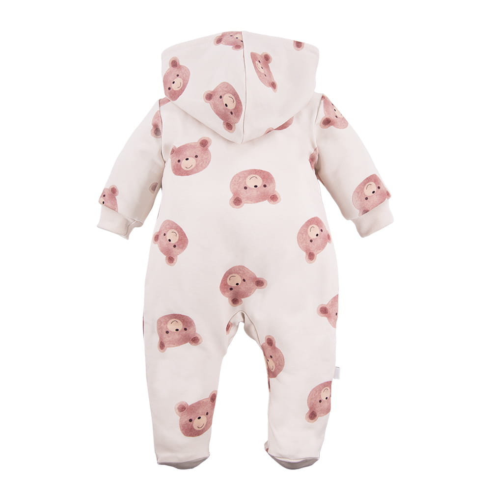 Kinder-Overall mit Kapuze in Ecru mit Bärenmotiv