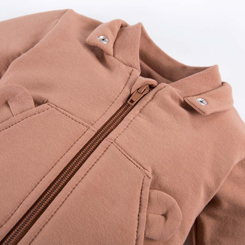 Kinder-Sweatshirt mit Kapuze und Ohren. Das Kinder-Sweatshirt mit abnehmbarer Kapuze ist ideal für Spaziergänge und zum Spielen auf dem Spielplatz. Kinder-Sweatshirts lassen sich mit bunten T-Shirts oder Kinderbodys zu einem hübschen Outfit kombinieren. Alter des Kindes: Von 3 Monaten bis 4 Jahren Kollektion: Cars&Bears Material: 100 % hochwertige Baumwolle Struktur/Materialart: Strickware Pflegehinweise: Maschinenwäsche bei 40 °C, nicht im Wäschetrockner trocknen Muster: Einfarbig – beige Ärmel: Langarm Verschluss: Reißverschluss Verarbeitung: Weicher Bündchen Herkunft: POLNISCHES PRODUKT Zertifikate: „Sicher für Kinder”, „Sicher für Babys” Die Babykleidung von Eevi wird mit Sorgfalt für den Komfort und die Sicherheit der Haut Ihres Kindes hergestellt. Warum vertrauen wir der Marke Eevi seit Jahren so sehr? Die Produkte werden mit Sorgfalt und unter Verwendung von Materialien höchster Qualität genäht. Bei der Herstellung von Babykleidung verwenden wir ausschließlich ökologische Farben, die für die Haut von Kindern und Babys unbedenklich sind. Die Stickereien in unseren Produkten sind von innen gesichert, damit sie die empfindliche Haut des Kindes nicht reizen. Alle Druckknöpfe und Verschlüsse, die wir in unseren Produkten verwenden, sind nickelfrei.