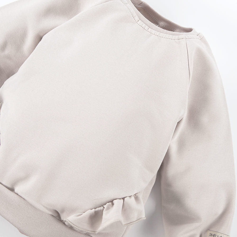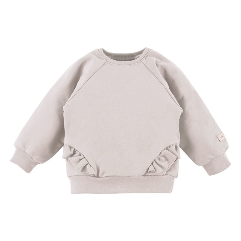 Kinder-Sweatshirt mit Rüschen aus der Kollektion „SIMPLY COMFY“, hergestellt aus weichem und angenehmem Sweatshirtstoff. Das Sweatshirt ist mit einem weichen Bündchen versehen. Das Sweatshirt ist bis Größe 80 im Nacken zu öffnen. Als dekoratives Element sind zwei Rüschen eingenäht. Das Kindersweatshirt ist ideal für Spaziergänge und zum Spielen auf dem Spielplatz. Zusammen mit Leggings aus derselben Kollektion oder Shorts ergibt es ein hübsches Set. Alter des Kindes: Von 6 Monaten bis 4 Jahren Kollektion: SIMPLY COMFY Material: 100 % hochwertige Baumwolle Struktur/Materialart: Strickware Pflegehinweise: Maschinenwäsche bei 40 °C, nicht im Wäschetrockner trocknen Muster: Farbe – beige Ärmel: Langarm Verschluss: Mit Druckknöpfen nur bis Größe 80 Verarbeitung: Weicher Bündchen Herkunft: 100 % POLNISCHES PRODUKT Zertifikate: „Sicher für Kinder”, „Sicher für Babys” Die Babykleidung von Eevi wird mit Sorgfalt für den Komfort und die Sicherheit der Haut Ihres Kindes hergestellt. Warum vertrauen wir der Marke Eevi seit Jahren so sehr? Die Produkte werden mit Sorgfalt und unter Verwendung von Materialien höchster Qualität genäht. Bei der Herstellung von Babykleidung verwenden wir ausschließlich ökologische Farben, die für die Haut von Kindern und Babys unbedenklich sind. Die Stickereien in unseren Produkten sind von innen gesichert, damit sie die empfindliche Haut des Kindes nicht reizen. Alle Druckknöpfe und Verschlüsse, die wir in unseren Produkten verwenden, sind nickelfrei.
