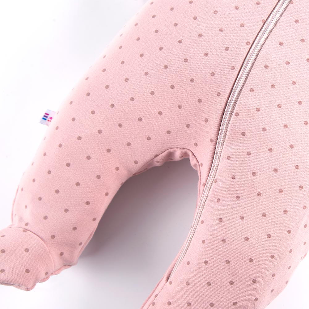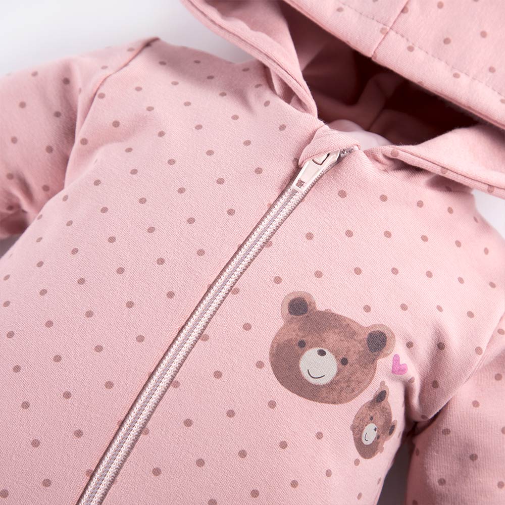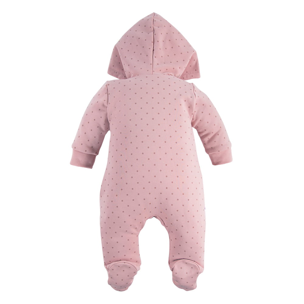 Kinder-Übergangsoverall mit Kapuze, rosa mit Punkten