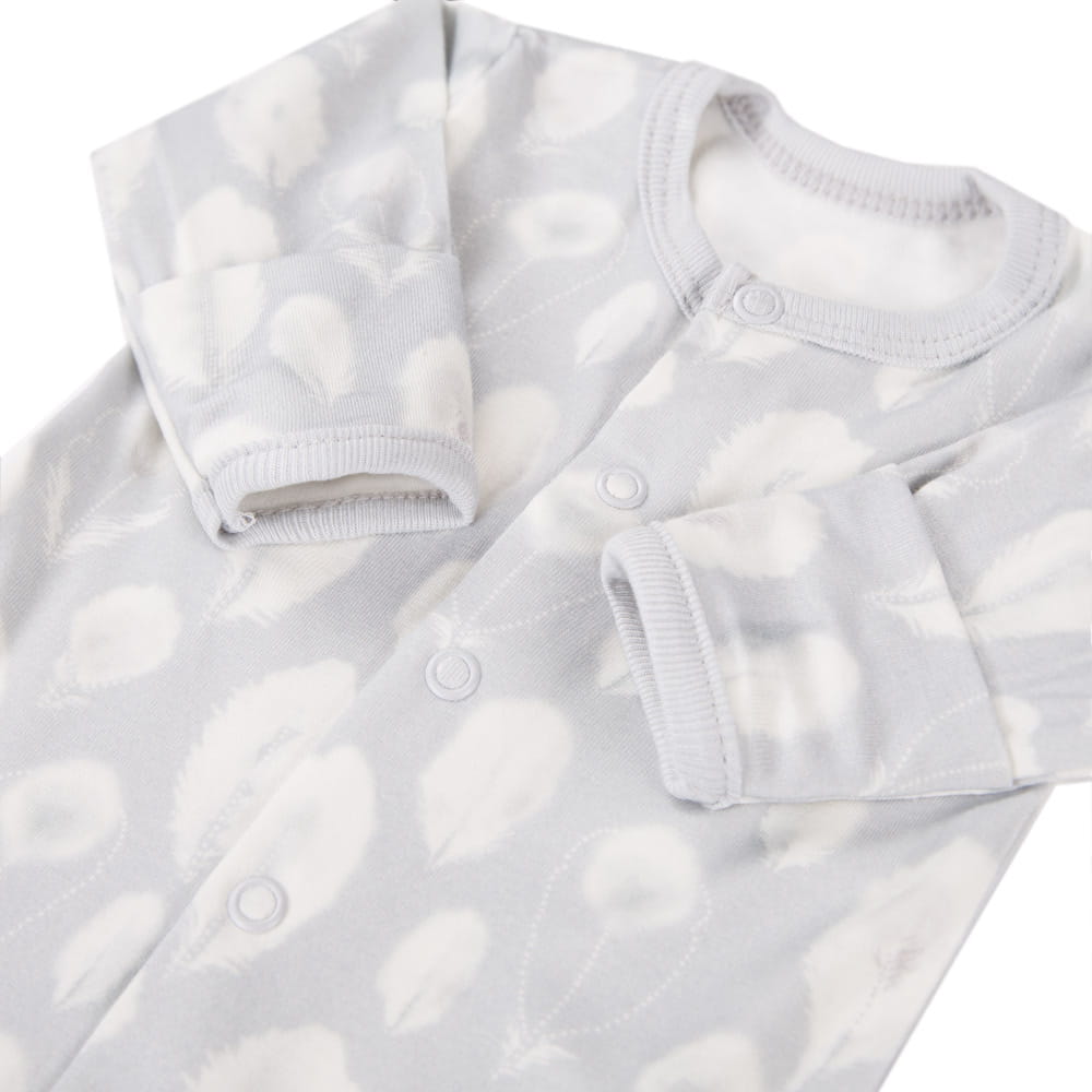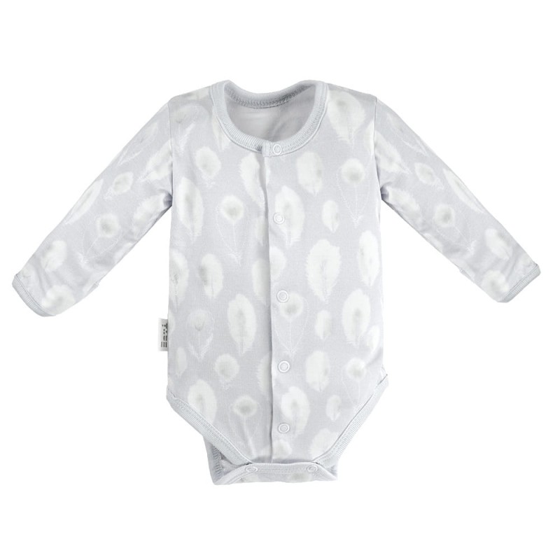 Langärmeliger Babybody mit Knöpfen aus der Kollektion „Bamboo“, genäht aus weicher und angenehm anzufassender Bambusviskose. Das schöne Federmuster wird im Digitaldruckverfahren hergestellt, wodurch der Body sich besonders weich anfühlt. Der Schnitt ermöglicht ein vollständiges Aufknöpfen über die gesamte Länge, wodurch der Body funktional und bequem ist. Der Body ist mit einem weichen Saum versehen. Babybodys eignen sich ideal für die ersten Lebensmonate des Kindes und gehören zu den von Müttern am häufigsten gewählten Produkten. Die Babykleidung von Eevi wird mit Sorgfalt für den Komfort und die Sicherheit der Haut Ihres Kindes hergestellt. Warum vertrauen Mütter seit Jahren der Marke Eevi? Die Produkte werden mit Sorgfalt und unter Verwendung von Materialien höchster Qualität genäht. Bei der Herstellung von Babykleidung verwenden wir ausschließlich ökologische Farben, die für die Haut von Kindern und Babys unbedenklich sind. Die Stickereien in unseren Produkten sind von innen gesichert, damit sie die empfindliche Haut des Kindes nicht reizen. Alle Druckknöpfe und Verschlüsse, die wir in unseren Produkten verwenden, sind nickelfrei. Die von uns angebotenen Bodys sind zertifiziert: „Sicher für Kinder” „Sicher für Babys” Material: 100 % Bambusviskose Alter des Kindes: 0 bis 3 Monate PRODUKT 100 % POLNISCH