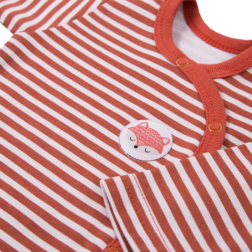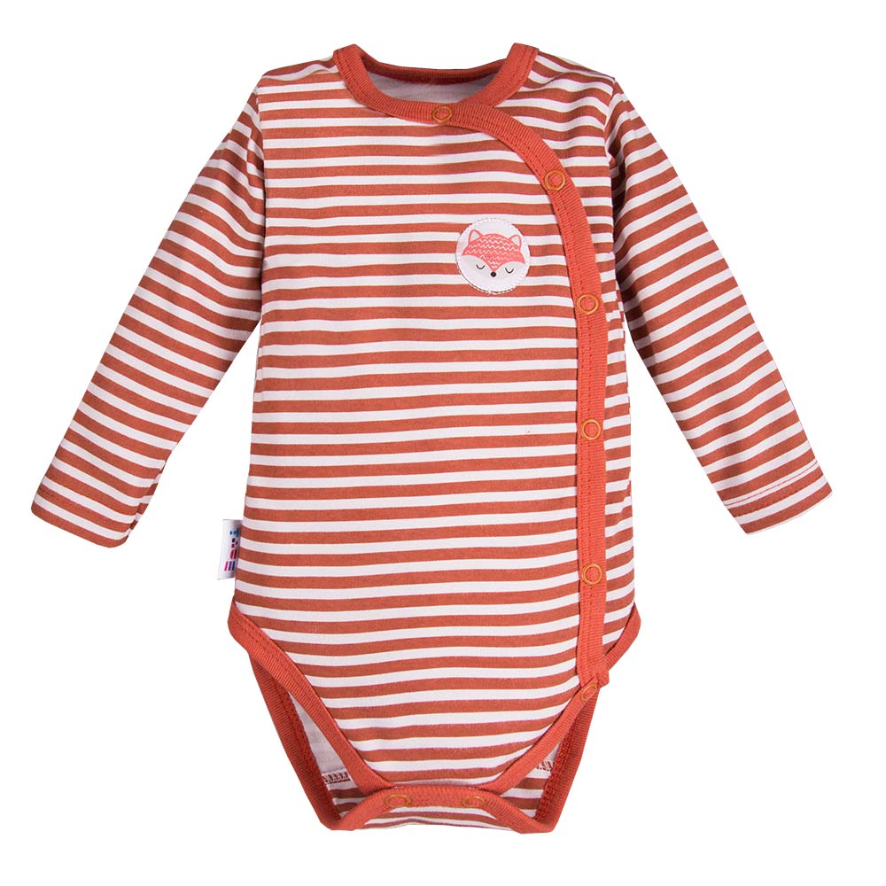 Babybody für Mädchen aus der Kollektion „Adventure”, genäht aus weichem und angenehm anzufassendem Baumwollstrick mit roten Streifen. Auf der Vorderseite des Bodys befindet sich ein niedlicher Aufnäher mit einem Fuchs. Der Schnitt ermöglicht ein vollständiges Aufknöpfen an der Seite und im Schritt, wodurch der Body funktional und bequem ist. Der Body ist mit einem weichen Saum versehen. Babybodys eignen sich ideal für die ersten Lebensmonate des Kindes und gehören zu den von Müttern am häufigsten gewählten Artikeln. Die Babykleidung von Eevi wird mit Sorgfalt für den Komfort und die Sicherheit der Haut Ihres Kindes hergestellt. Warum vertrauen Mütter der Marke Eevi seit Jahren so sehr? Die Produkte werden mit Präzision und unter Verwendung von Materialien höchster Qualität genäht. Bei der Herstellung von Babykleidung verwenden wir ausschließlich ökologische Farben, die für die Haut von Kindern und Babys unbedenklich sind. Die Stickereien in unseren Produkten sind von innen gesichert, damit sie die empfindliche Haut des Kindes nicht reizen. Alle Druckknöpfe und Verschlüsse, die wir in unseren Produkten verwenden, sind nickelfrei. Die von uns angebotenen Bodys sind zertifiziert: „Sicher für Kinder” „Sicher für Babys” Zusammensetzung: 100 % hochwertige Baumwolle Alter des Kindes: von 0 bis 9 Monaten PRODUKT 100 % POLNISCH