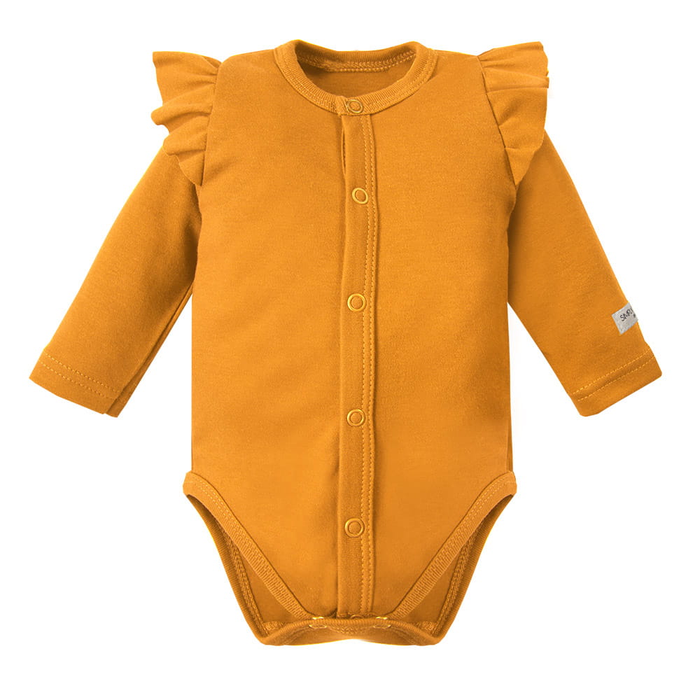Body mit Rüschen aus der Kollektion „Simply Comfy“, genäht aus weichem und angenehmem Baumwollstrick. Ein dekoratives Element ist die hübsche Rüsche an den Schultern. Der Schnitt ermöglicht ein vollständiges Aufknöpfen, wodurch der Body funktional und bequem ist. Der Body ist mit einem weichen Saum versehen. Babybodys eignen sich ideal für die ersten Lebensmonate des Kindes und gehören zu den von Müttern am häufigsten gewählten Produkten. Die Babykleidung von Eevi wird mit Sorgfalt für den Komfort und die Sicherheit der Haut Ihres Kindes hergestellt. Warum vertrauen Mütter der Marke Eevi seit Jahren so sehr? Die Produkte werden mit Präzision und unter Verwendung von Materialien höchster Qualität genäht. Bei der Herstellung von Babykleidung verwenden wir ausschließlich ökologische Farben, die für die Haut von Kindern und Babys unbedenklich sind. Die Stickereien in unseren Produkten sind von innen gesichert, damit sie die empfindliche Haut des Kindes nicht reizen. Alle Druckknöpfe und Verschlüsse, die wir in unseren Produkten verwenden, sind nickelfrei. Die von uns angebotenen Body sind zertifiziert: „Sicher für Kinder” „Sicher für Babys” Zusammensetzung: 100 % hochwertige Baumwolle Alter des Kindes: von 0 bis 9 Monaten PRODUKT 100 % POLNISCH