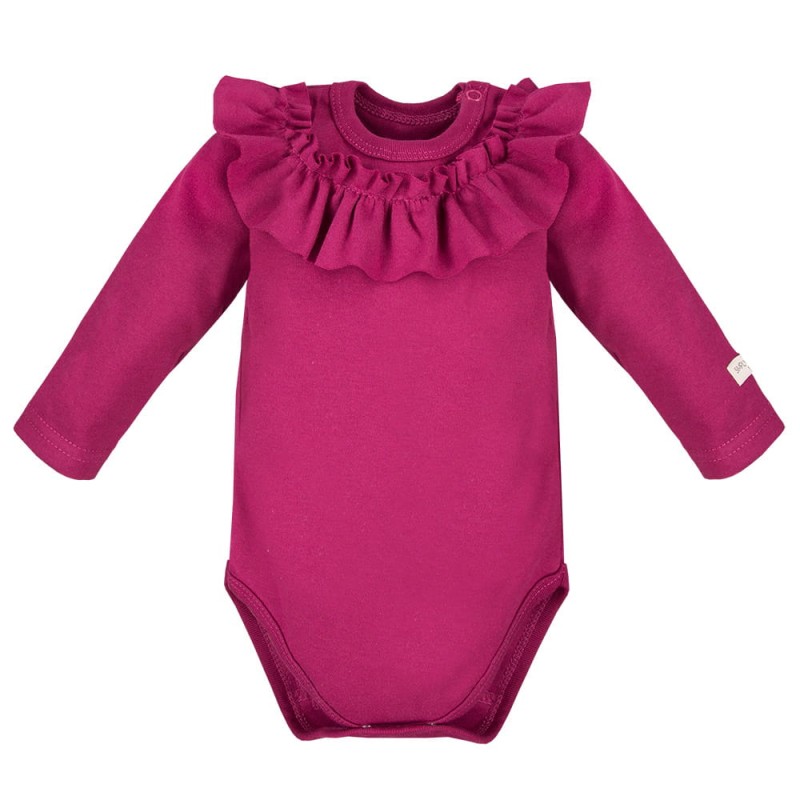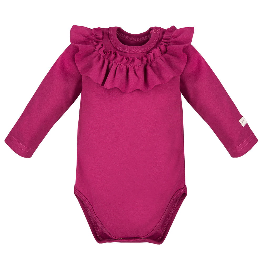 Das Mädchen-Body mit Rüschen aus der Kollektion „Simply Comfy” ist aus weichem und angenehmem Baumwollstrick gefertigt. Das dekorative Element ist die am Ausschnitt aufgenähte Rüsche. Der Schnitt ermöglicht das Öffnen an den Schultern und im Schritt, wodurch der Body funktional und bequem ist. Der Body ist mit einem weichen Saum versehen. Babybodys eignen sich ideal für die ersten Lebensmonate des Kindes und gehören zu den von Müttern am häufigsten gewählten Produkten. Die Babykleidung von Eevi wird mit Sorgfalt für den Komfort und die Sicherheit der Haut Ihres Kindes hergestellt. Warum vertrauen Mütter der Marke Eevi seit Jahren so sehr? Die Produkte werden mit Präzision und unter Verwendung von Materialien höchster Qualität genäht. Bei der Herstellung von Babykleidung verwenden wir ausschließlich ökologische Farben, die für die Haut von Kindern und Babys unbedenklich sind. Die Stickereien in unseren Produkten sind von innen gesichert, damit sie die empfindliche Haut des Kindes nicht reizen. Alle Druckknöpfe und Verschlüsse, die wir in unseren Produkten verwenden, sind nickelfrei. Die von uns angebotenen Bodys sind zertifiziert: „Sicher für Kinder” „Sicher für Babys” Zusammensetzung: 100 % hochwertige Baumwolle Alter des Kindes: von 9 Monaten bis 3 Jahren PRODUKT 100 % POLNISCH