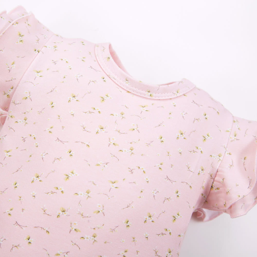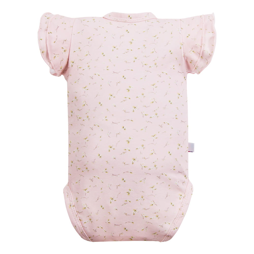 Kinderbody mit kurzen Ärmeln, rosa mit Blumenmuster