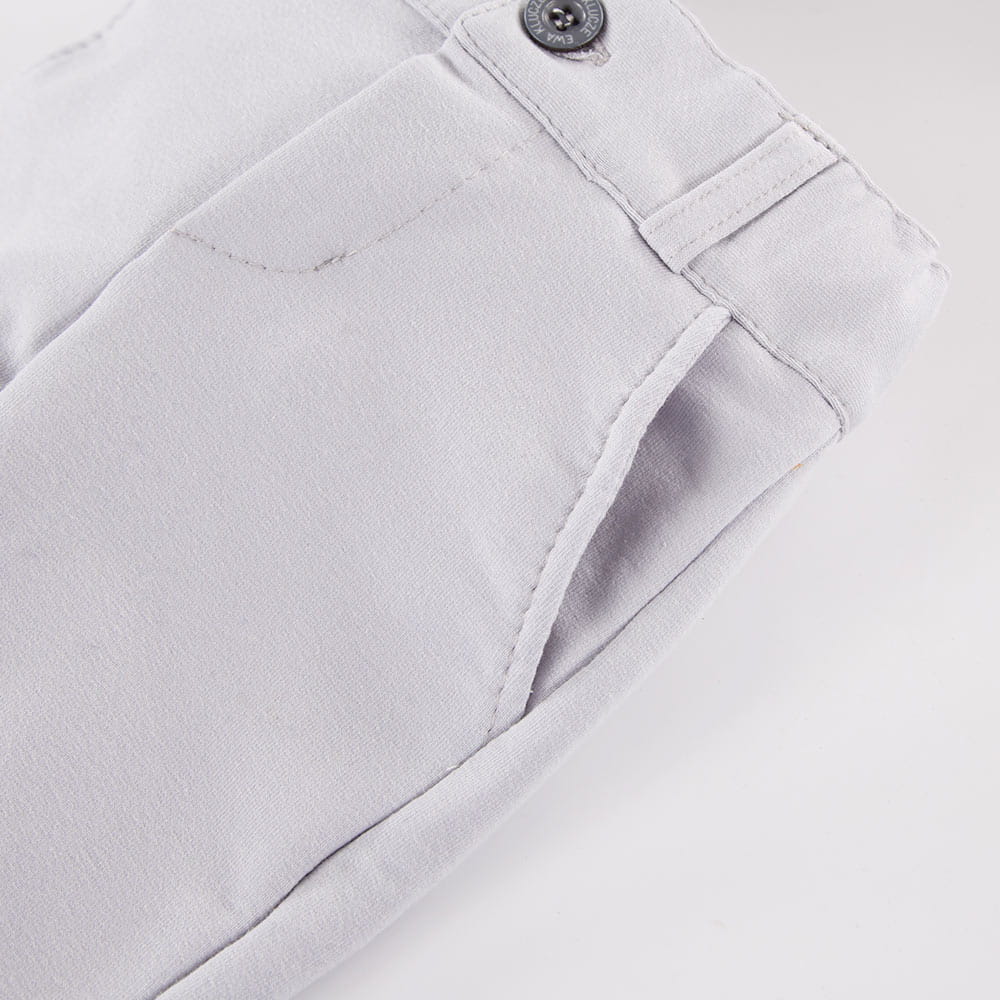 Jungenhose aus der Ceremony-Kollektion in Grau, gefertigt aus weichem und angenehm zu tragendem Sweatstoff in Grau- und Marineblau-Tönen, ist eine elegante und bequeme Wahl für die Kleinen. Der Knopfverschluss und ein dezentes Echtleder-Patch an der Tasche verleihen einen stilvollen Akzent.