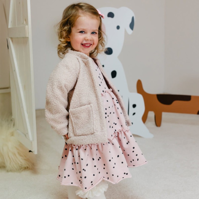 Jacke für Kinder aus der Kollektion Dogs&Spots. Aus weichem und angenehmem Lammfellstoff genäht. Ideal für den Herbst. Schützt Ihr Kind an kühlen und windigen Tagen. nbsp; Alter des Kindes: von 3 Monaten bis 4 Jahren Kollektion: Dogs&Spots Material: 20 % Viskose, 10 % Wolle, 70 % Polyester Struktur/Materialart: Strickware Pflegehinweise: Maschinenwäsche bei 40 °C, nicht im Wäschetrockner trocknen Muster: Hellbeige Ärmel: Langarm Verschluss: Durchgehender Reißverschluss Verarbeitung: Weicher Bündchen Herkunft: 100 % polnisches Produkt Zertifikate: „Sicher für Kinder”, „Sicher für Babys” Die Babykleidung von Eevi wird mit Blick auf den Komfort und die Sicherheit der Haut Ihres Kindes hergestellt. Warum vertrauen wir der Marke Eevi seit Jahren so sehr? Die Produkte werden mit Sorgfalt und unter Verwendung von Materialien höchster Qualität genäht. Bei der Herstellung von Babykleidung verwenden wir ausschließlich ökologische Farben, die für die Haut von Kindern und Babys unbedenklich sind. Die Stickereien in unseren Produkten sind von innen gesichert, damit sie die empfindliche Haut des Kindes nicht reizen. Alle Druckknöpfe und Verschlüsse, die wir in unseren Produkten verwenden, sind nickelfrei.