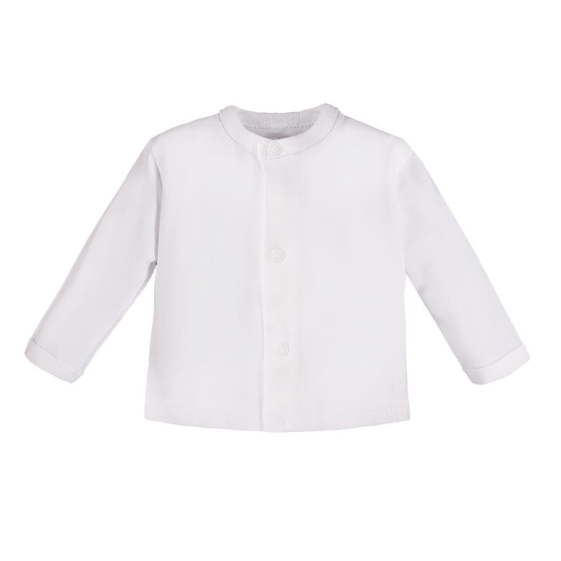 Baby-Strampler mit Knöpfen – weiß Der Strampler mit Knöpfen aus weichem, angenehmem Baumwollstrick ist die perfekte Wahl für Neugeborene und Babys ab den ersten Lebenstagen. Der vollständig aufknöpfbare Schnitt erleichtert das tägliche Anziehen des Babys und sorgt für höchsten Komfort. Er eignet sich ideal für die ersten Lebenswochen, auch für Frühgeborene. Der zarte Saum am Hals schützt die Haut vor Scheuern, und die nickelfreien Druckknöpfe garantieren Sicherheit – auch für Kinder mit Allergien. Warum sollten Sie sich für einen Eevi-Strampler entscheiden? 100 % Baumwolle – natürlich, atmungsaktiv und sanft zur Haut des Neugeborenen. Komplett zu öffnender Schnitt – bequemes Anziehen, ohne den Kopf durchziehen zu müssen. Weiche Paspelierung – schützt vor Reizungen im Halsbereich. Sichere Druckknöpfe – nickelfrei. Polnisches Produkt – mit Liebe zum Detail genäht. Produkteigenschaften: Größen: 46, 48, 50, 56, 62, 68, 74 Verwendungszweck: Für den Alltag / ab den ersten Lebenstagen / für Frühgeborene Farbe: Weiß Material: 100 % Baumwolle Materialart: Strickware Schnitt: Über die gesamte Länge zu öffnen Verschluss: Nickelfreie Druckknöpfe Verarbeitung: Weicher Kragen Pflege: Waschen bei 40 °C, nicht im Wäschetrockner trocknen Herkunft: 100 % polnisches Produkt Zertifikate: „Sicher für Kinder” Die perfekte Wahl für die Kleinsten Produkte von Eevi stehen für Qualität, Sicherheit und Pflege für die Haut von Babys. Jeder Strampler wird in Polen aus zertifizierter Baumwolle hergestellt und ist auf den Komfort der Kleinsten ausgelegt. Setzen Sie von den ersten Lebenstagen Ihres Kindes an auf bewährte Lösungen. Entscheiden Sie sich für Qualität, der Sie vertrauen können – entscheiden Sie sich für Eevi.