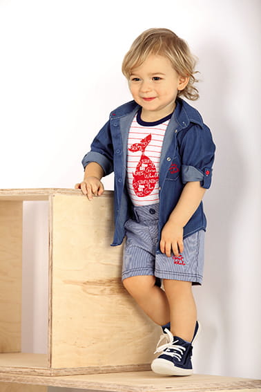 Jungen Hemd aus der Kollektion „Big Fish“, aus weichem und angenehmem Stoff. Auf der Vorderseite befindet sich eine kleine Stickerei auf der Tasche. Der Schnitt ermöglicht ein vollständiges Aufknöpfen, wodurch das Kleidungsstück funktional und bequem ist. Das Hemd hat umgeschlagene Ärmel, die mit Knöpfen geschlossen werden. Die in unseren Produkten verwendeten Druckknöpfe sind nickelfrei. Hergestellt in Polen, mit dem Zertifikat „Sicher für Kinder”. 100 % Viskose