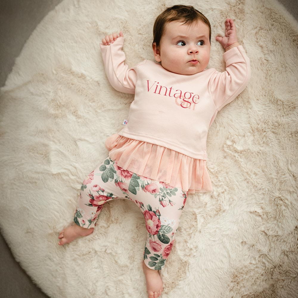 Leggings aus Sweatshirtstoff aus der Kollektion „Roses”, genäht aus weichem und angenehm anzufassendem Baumwoll-Sweatshirtstoff. Die Leggings haben einen Gummizug in der Taille, der den Bauch des Kindes nicht einengt. Die Leggings sind mit unserem eigenen Rosenmuster digital bedruckt, wodurch es zart und nicht spürbar ist. Mütter wählen gerne Kinderleggings, die sich ideal zum Spielen oder Spazierengehen eignen. Zu den Leggings können wir eine Tunika aus derselben Kollektion oder ein Sweatshirtkleid kombinieren. Die Babykleidung von Eevi wird mit Sorgfalt für den Komfort und die Sicherheit der Haut Ihres Kindes hergestellt. Warum vertrauen Mütter der Marke Eevi seit Jahren so sehr? Die Produkte werden mit Präzision und unter Verwendung von Materialien höchster Qualität genäht. Bei der Herstellung von Babykleidung verwenden wir ausschließlich ökologische Farben, die für die Haut von Kindern und Babys unbedenklich sind. Die Stickereien in unseren Produkten sind von innen gesichert, damit sie die empfindliche Haut des Kindes nicht reizen. Alle Druckknöpfe und Verschlüsse, die wir in unseren Produkten verwenden, sind nickelfrei. Die von uns angebotenen Leggings sind zertifiziert: „Sicher für Kinder” „Sicher für Säuglinge” Zusammensetzung: 100 % hochwertige Baumwolle Alter des Kindes: von 3 Monaten bis 4 Jahren Produkt 100 % POLNISCH