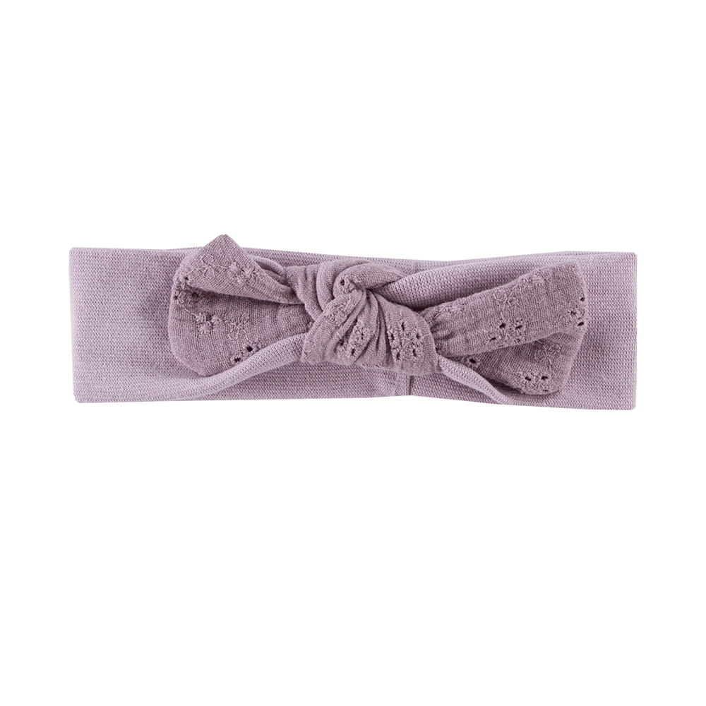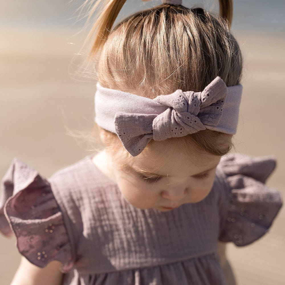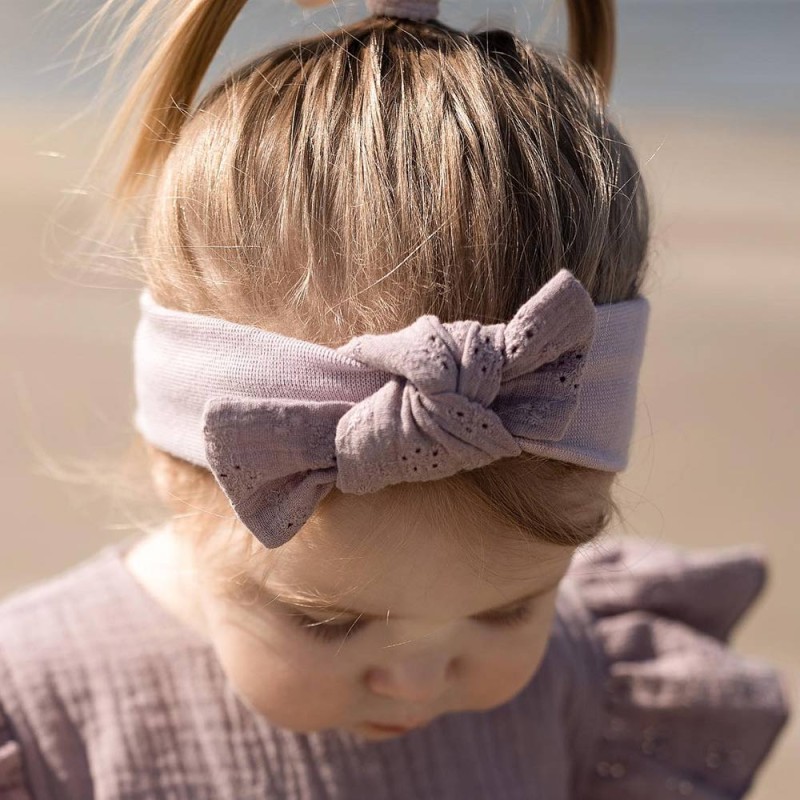 Kinderstirnband in Heidekrautfarbe mit Musselin-Schleife