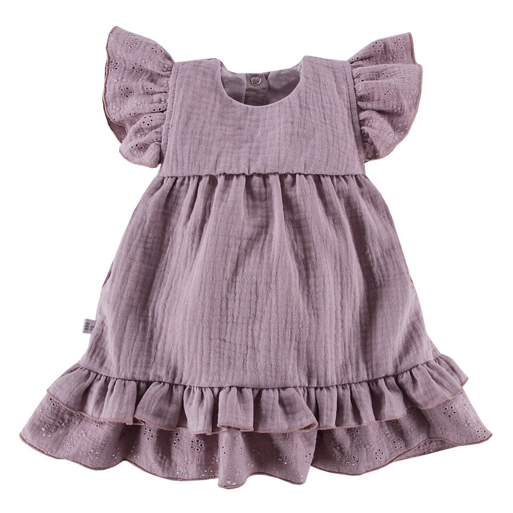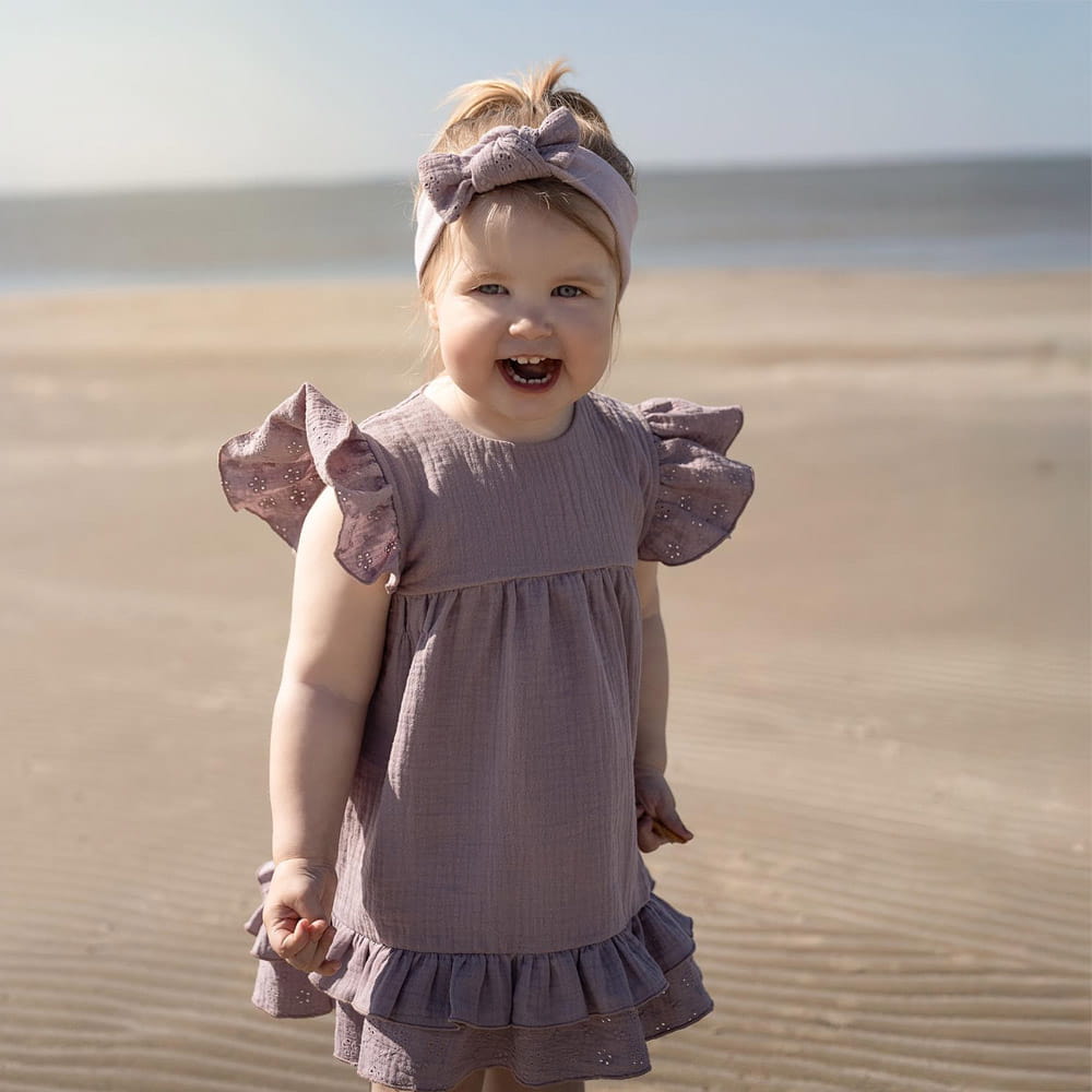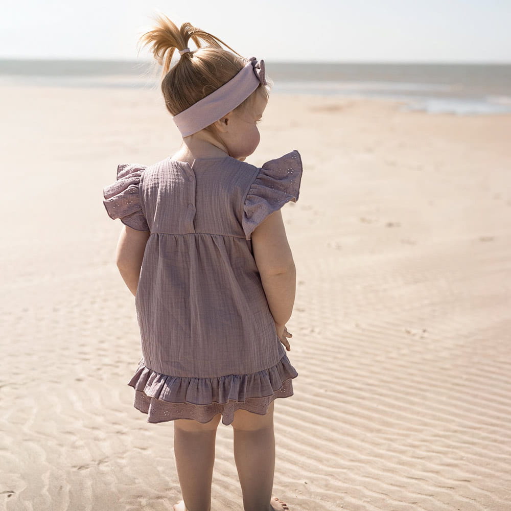 Kleid für Kinder aus Musselin in Heidekrautfarbe