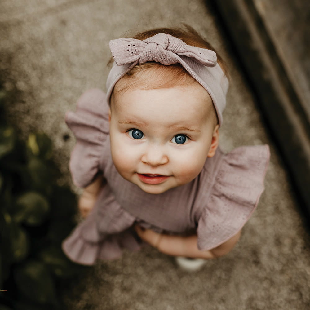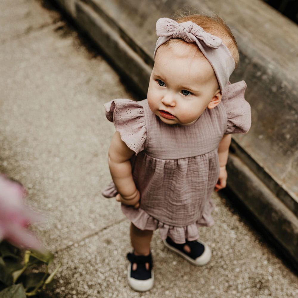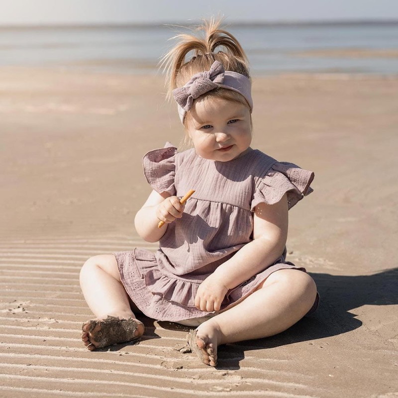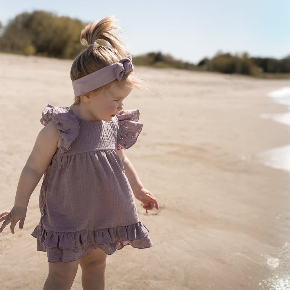 Kleid für Kinder aus Musselin in Heidekrautfarbe