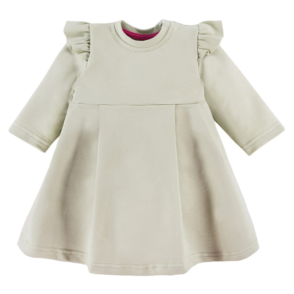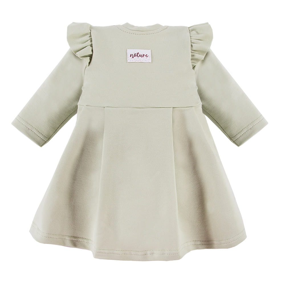 Mädchenkleid aus der Ceremony Kollektion aus weichem und angenehm zu tragendem Baumwoll-Sweatstoff. Das Kleid verfügt über dekorative Rüschen, die ihm einen leichten und mädchenhaften Charakter verleihen.