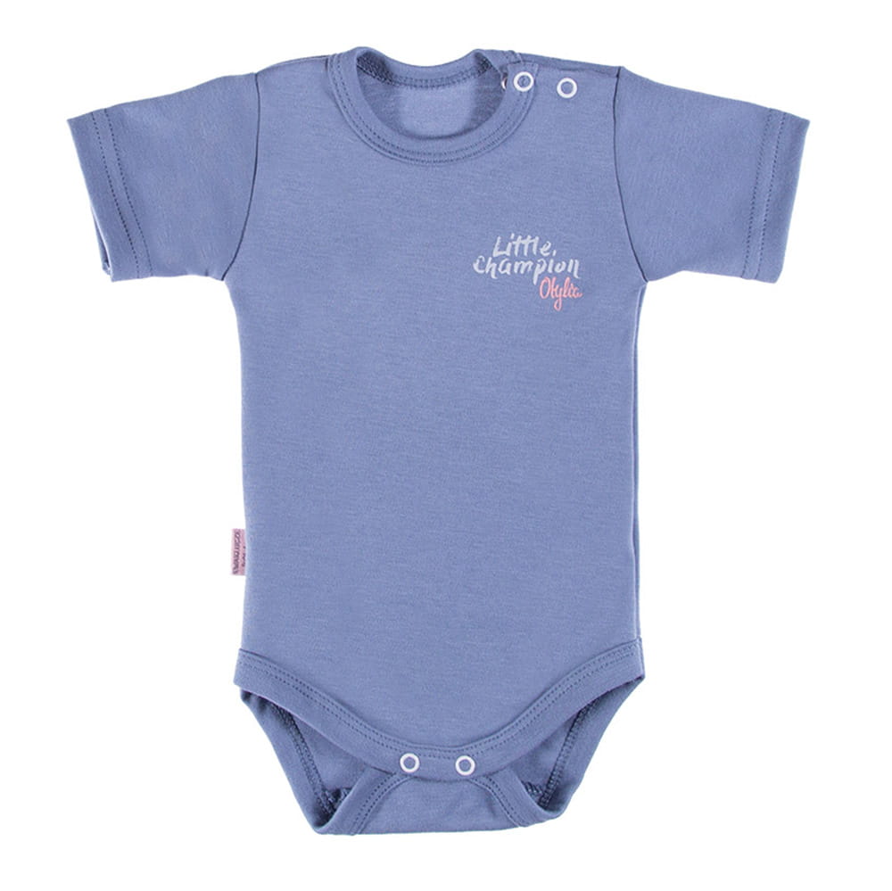 Kurzärmeliges Mädchen-Body aus der Kollektion „Little Champion“, genäht aus weichem und angenehm anzufassendem graphitfarbenem Strickstoff. Auf der Vorderseite befindet sich ein Aufdruck aus ökologischen Farben. Der Schnitt ermöglicht ein vollständiges Aufknöpfen, wodurch das Kleidungsstück funktional und bequem ist. Mit weicher Paspelierung verarbeitet. Die in unseren Produkten verwendeten Druckknöpfe sind nickelfrei. Hergestellt in Polen, mit dem Zertifikat „Sicher für Kinder”. 100 % Baumwolle