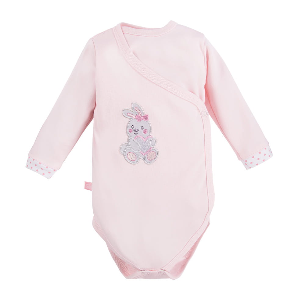 Baby-Wickelbody rosa mit Hasenstickerei – Newborn Kollektion