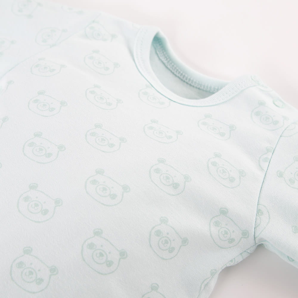 Langärmeliges Babybody mit mintfarbenem Bärenmotiv