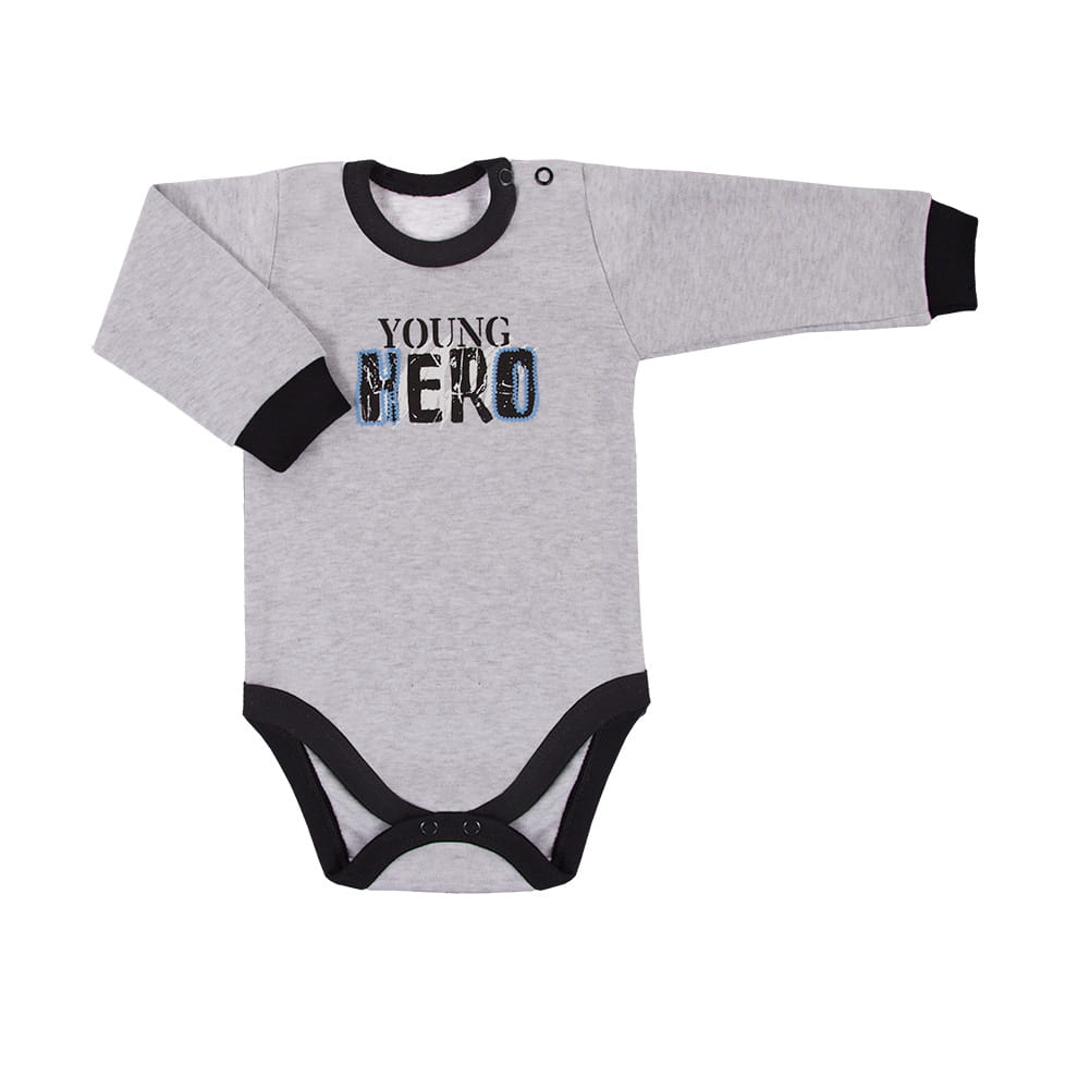 Langärmeliger Body aus der Kollektion „Power“, genäht aus weichem und angenehm anzufassendem Melange-Strickstoff. Auf der Vorderseite des Bodys befindet sich ein Schriftzug. Der Schnitt ermöglicht ein vollständiges Aufknöpfen, wodurch der Body funktional und bequem ist. Der Body ist mit einer weichen, kontrastierenden Paspel und einem Bündchen an den Ärmeln versehen. Babybodys eignen sich ideal für die ersten Lebensmonate des Kindes und gehören zu den von Müttern am häufigsten gewählten Artikeln. Die Babykleidung von Eevi wird mit Sorgfalt für den Komfort und die Sicherheit der Haut Ihres Kindes hergestellt. Warum vertrauen Mütter der Marke Eevi seit Jahren so sehr? Die Produkte werden mit Präzision und unter Verwendung von Materialien höchster Qualität genäht. Bei der Herstellung von Babykleidung verwenden wir ausschließlich ökologische Farben, die für die Haut von Kindern und Babys unbedenklich sind. Die Stickereien in unseren Produkten sind von innen gesichert, damit sie die empfindliche Haut des Kindes nicht reizen. Alle Druckknöpfe und Verschlüsse, die wir in unseren Produkten verwenden, sind nickelfrei. Die von uns angebotenen Bodys sind zertifiziert: „Sicher für Kinder” „Sicher für Babys” Das Garn, aus dem wir unsere Baumwolle selbst herstellen, ist nach dem OEKO-TEX 100 Standard zertifiziert. Zusammensetzung: 100 % hochwertige Baumwolle Alter des Kindes: von 6 bis 24 Monaten Produkt: 100 % POLNISCH