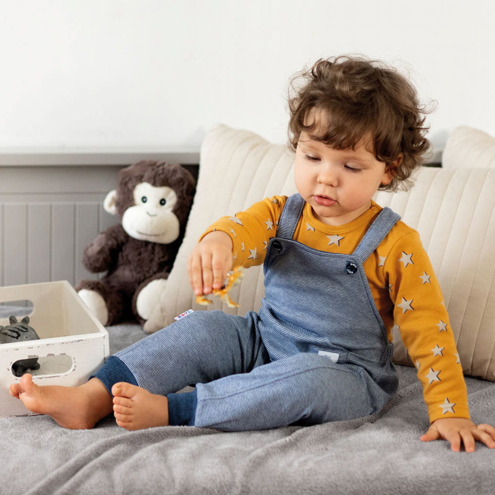 Baby-Latzhosen aus der Kollektion „Unique“, genäht aus weichem und angenehm anzufassendem Baumwollstrick mit Streifen. Auf der Vorderseite der Latzhose befinden sich eine Tasche und ein Aufnäher. Der Schnitt ermöglicht das Aufknöpfen im Schritt nur bis Größe 74 und an den Schultern, wodurch das Kleidungsstück funktional und bequem ist. Die Latzhose ist mit kontrastierenden Bündchen versehen. Die Träger können gekreuzt oder gerade getragen werden. Die Baby-Latzhose eignet sich ideal als Alternative zu Stramplern. Sie eignet sich hervorragend als Ausgehkleidung für Ihr Baby. Sie kann als Schlafanzug oder Ausgehkleidung verwendet werden. Die Babykleidung von Eevi wird mit Sorgfalt für den Komfort und die Sicherheit der Haut Ihres Kindes hergestellt. Warum vertrauen wir der Marke Eevi seit Jahren so sehr? Die Produkte werden mit Präzision und unter Verwendung von Materialien höchster Qualität genäht. Bei der Herstellung von Babykleidung verwenden wir ausschließlich ökologische Farben, die für die Haut von Kindern und Babys unbedenklich sind. Die Stickereien in unseren Produkten sind von innen gesichert, damit sie die empfindliche Haut des Kindes nicht reizen. Alle Druckknöpfe und Verschlüsse, die wir in unseren Produkten verwenden, sind nickelfrei. Der von uns angebotene Strampler ist zertifiziert: „Sicher für Kinder” „Sicher für Babys” Material: 100 % hochwertige Baumwolle Alter des Kindes: von 0 bis 2 Jahren Produkt 100 % POLNISCH