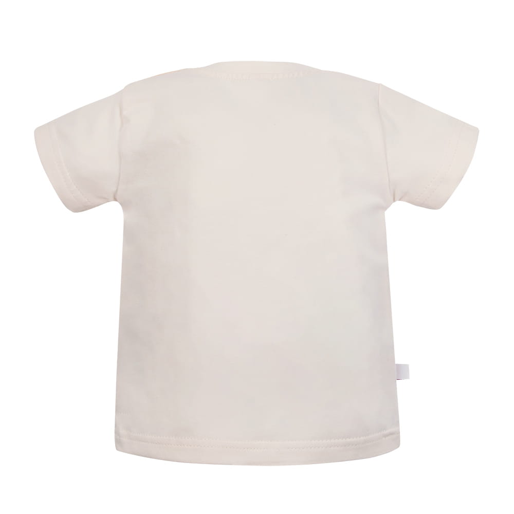 Charmantes und bequemes T-Shirt für Mädchen aus einem Stoff mit 95% Baumwolle und 5% Elasthan. Das T-Shirt hat eine zarte Ecru-Farbe und besitzt in der Mitte einen Druck mit lächelnden Kirschen, der ihm einen fröhlichen und mädchenhaften Charakter verleiht. Das weiche und elastische Material sorgt für hohen Tragekomfort und macht das T-Shirt ideal für den Alltag und zum Spielen.