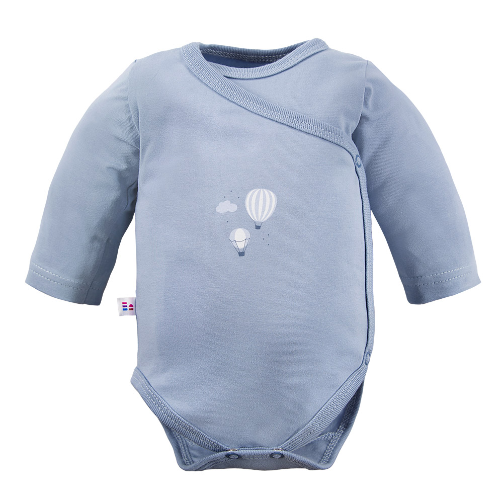- Blaues Langarm-Wickelbody mit Ballonmotiv
