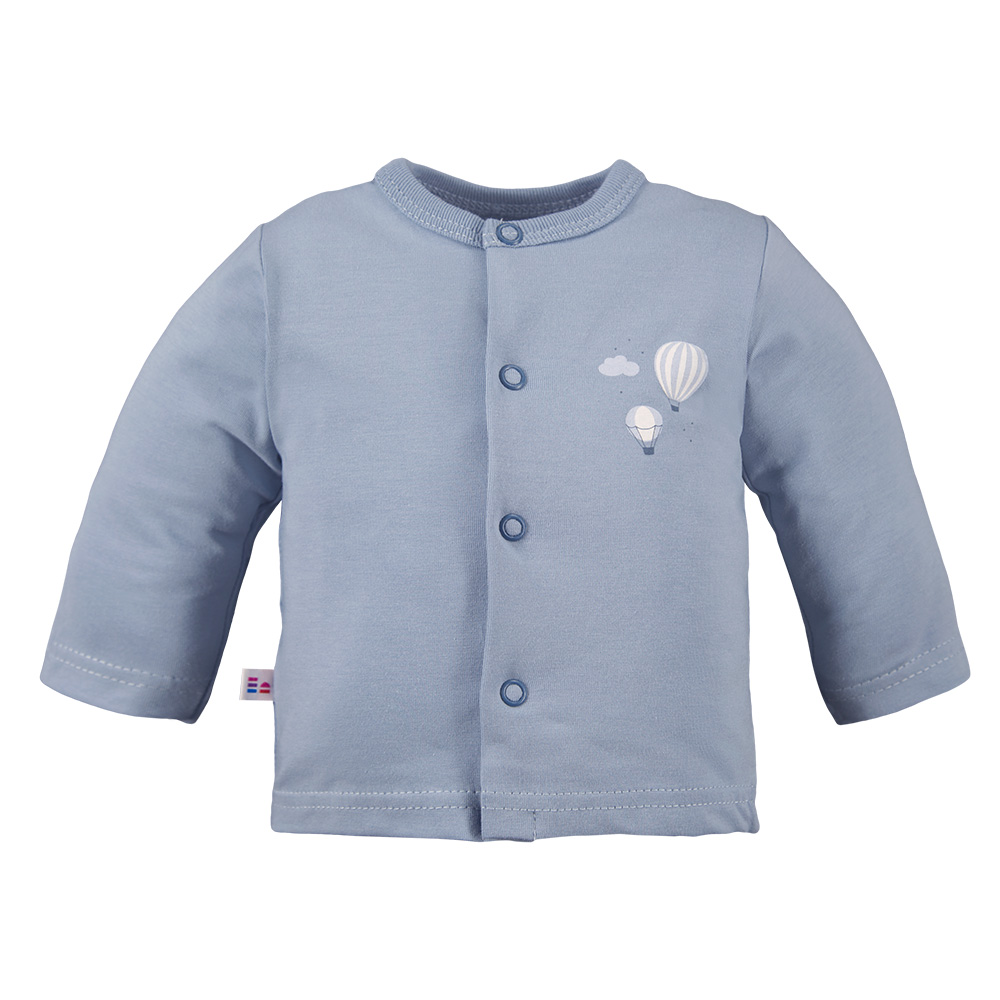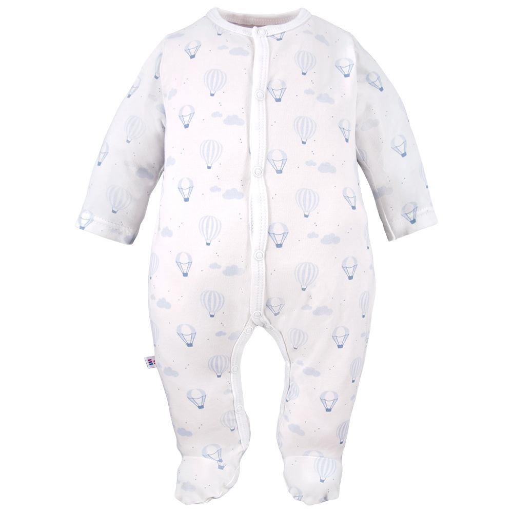 Die Farbgebung in Blau-, Weiß- und Ecru-Tönen mit zartem Ballon- und Wolkenmotiv macht dieses Set zu einer stilvollen und praktischen Erstausstattung.