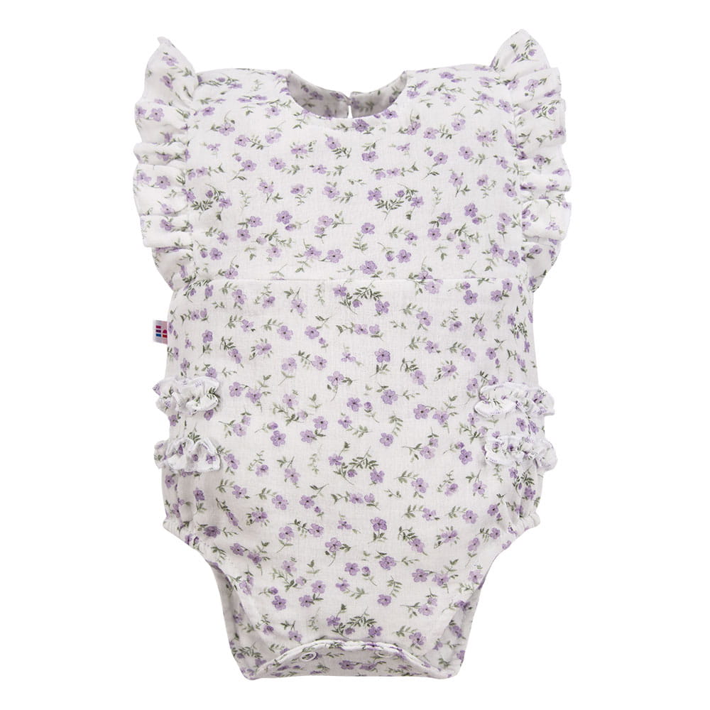 Muslin-Babybody mit Ärmeln in Ecru mit Blumenmuster