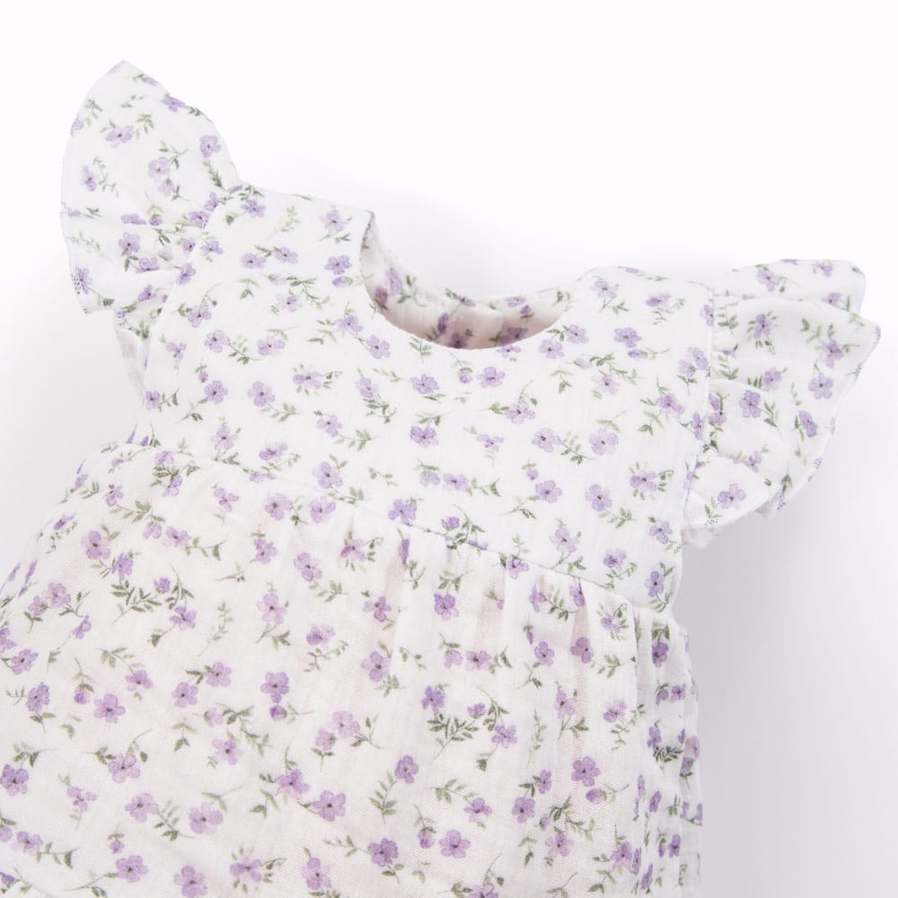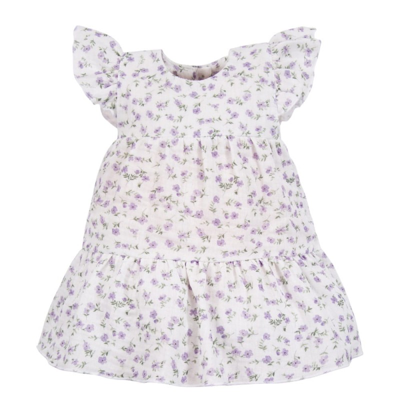 Musselin-Kleid mit violetten Blumen in Ecru