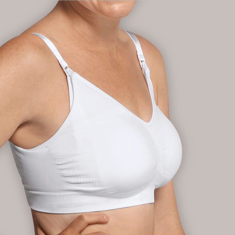 Der nahtlose Still-Büstenhalter ist ein zarter und bequemer Büstenhalter, der sich an die sich verändernde Körperform der werdenden Mutter anpasst. Der leicht zu öffnende Verschluss legt die gesamte Brust frei und maximiert so den Kontakt zwischen Mutter und Kind während des Stillens. Praktisch: Einfaches Freilegen der Brust dank zusätzlichem Verschluss vorne. Nächtliches Stillen: Sehr weiches und elastisches Material. Einfaches Stillen. Sanft: Das besonders weiche Material sorgt dafür, dass nichts drückt oder reibt. Passform: Die mitgelieferte Verlängerung für den BH erhöht die Verstellbarkeit. Bequem: Keine starren Bügel, keine störenden Nähte. Der Still-BH ist nach O-ECO TEX STANDARD 100 zertifiziert. Zusammensetzung: 91 % POLYAMID, 9 % ELASTHAN