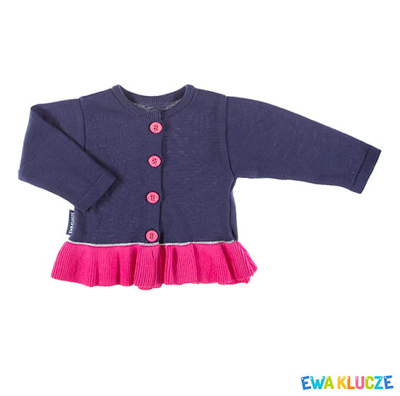 Pullover für Mädchen aus der Kollektion „Cosmos” aus weichem Baumwollgarn. Vorne mit Knöpfen zu schließen. Hergestellt in Polen. 100 % Baumwolle