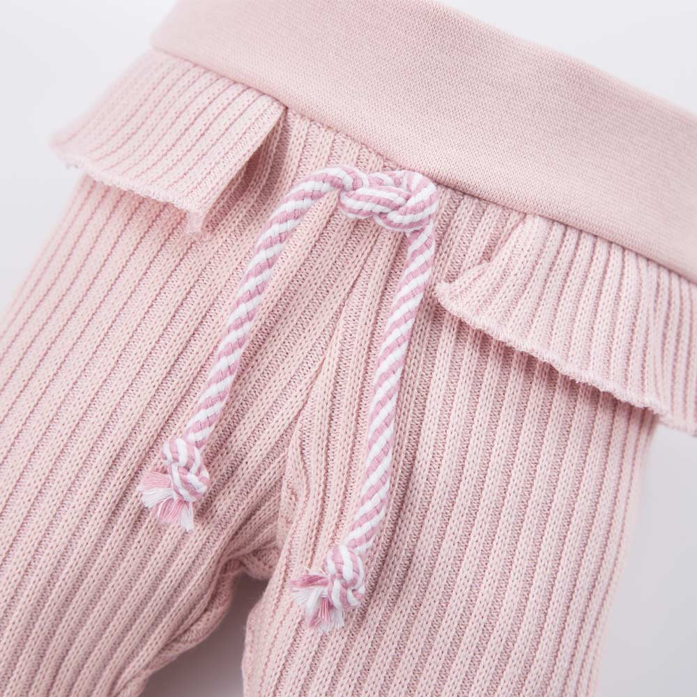 Rosa Strickleggings mit Kordelzug