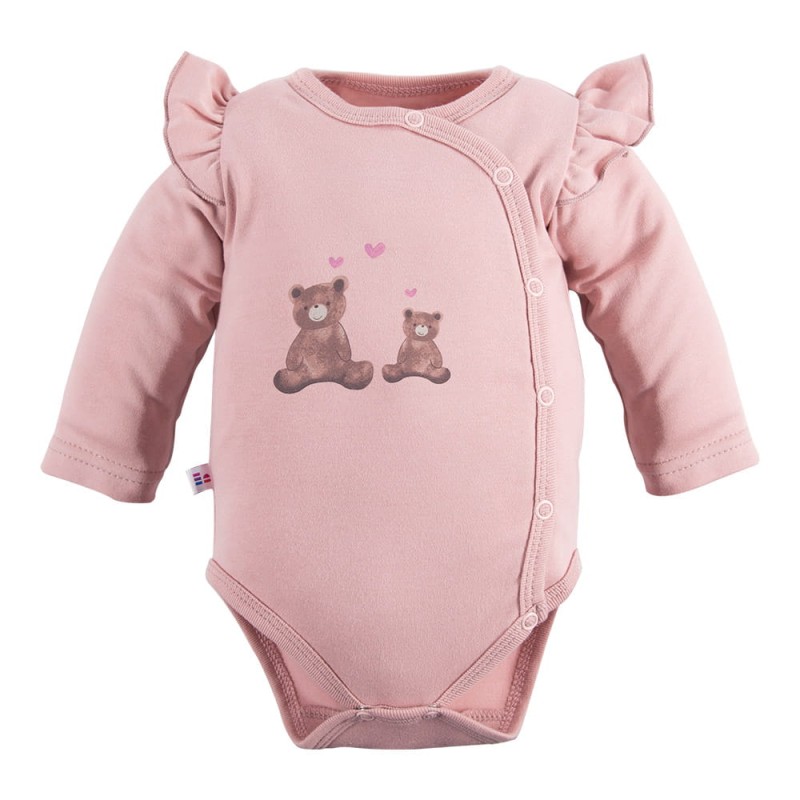 Rosa Wickelbody mit Umschlag und Teddybären. Wickelbodys eignen sich ideal für Kinder bis zu 3 Jahren. Mütter wählen meistens Bodys für ihre Kleinen. Sie sind ein Muss in jeder Baby- oder Kindergartenerstattung. Alter des Kindes: Von 0 bis 6 Monaten Kollektion: Hearts&Bears Material: 100 % hochwertige Baumwolle Struktur/Materialart: Strickware Pflegehinweise: Maschinenwäsche bei 40 °C, nicht im Wäschetrockner trocknen Muster: Rosa – mit Teddybären Ärmel: Langarm Verschluss: Wickelverschluss Verarbeitung: Weiche Paspelierung Herkunft: 100 % polnisches Produkt Zertifikate: „Sicher für Kinder”, „Sicher für Babys” Die Babykleidung von Eevi wird mit Sorgfalt für den Komfort und die Sicherheit der Haut Ihres Kindes hergestellt. Warum vertrauen wir der Marke Eevi seit Jahren so sehr? Die Produkte werden mit Sorgfalt und unter Verwendung von Materialien höchster Qualität genäht. Bei der Herstellung von Babykleidung verwenden wir ausschließlich ökologische Farben, die für die Haut von Kindern und Babys unbedenklich sind. Die Stickereien in unseren Produkten sind von innen gesichert, damit sie die empfindliche Haut des Kindes nicht reizen. Alle Druckknöpfe und Verschlüsse, die wir in unseren Produkten verwenden, sind nickelfrei.