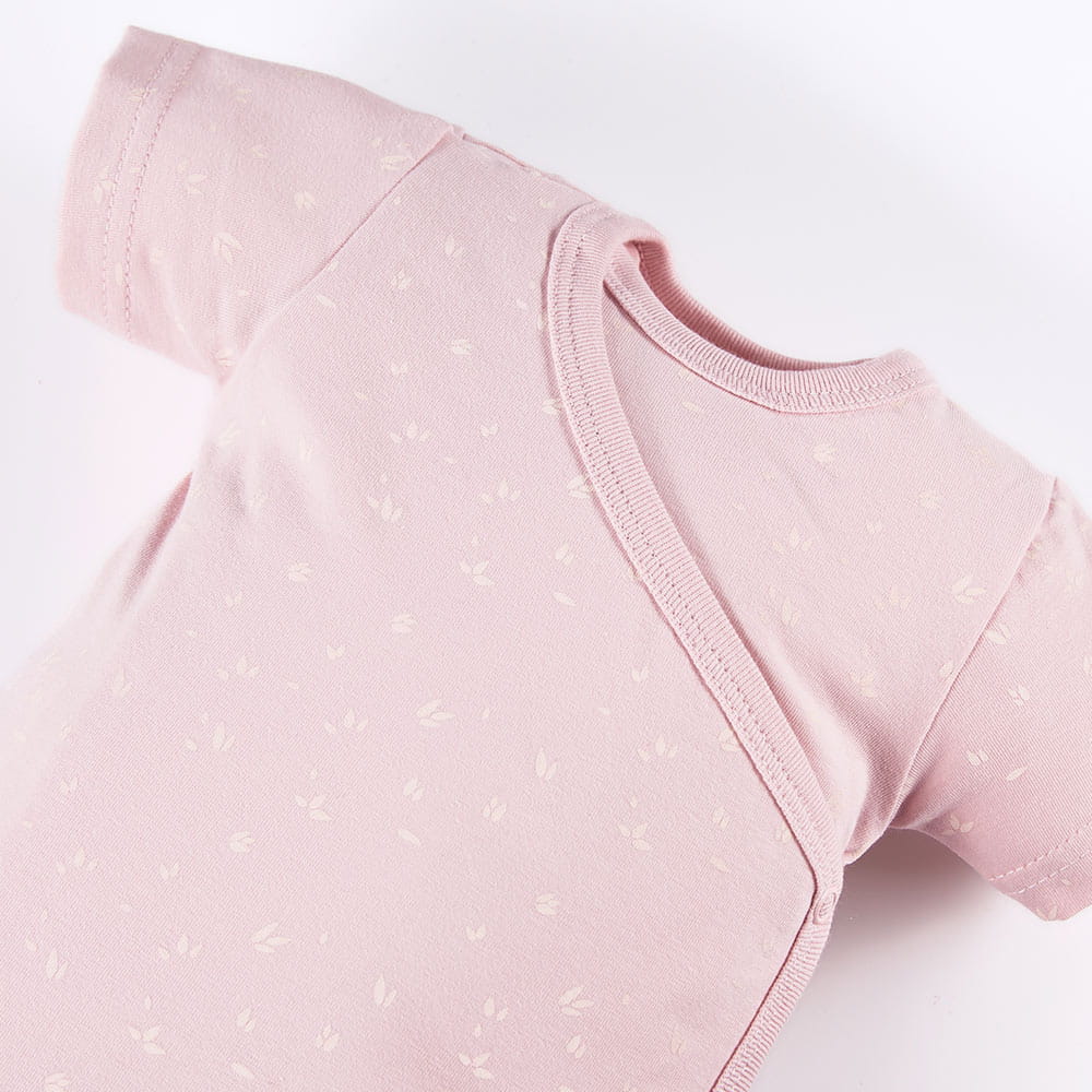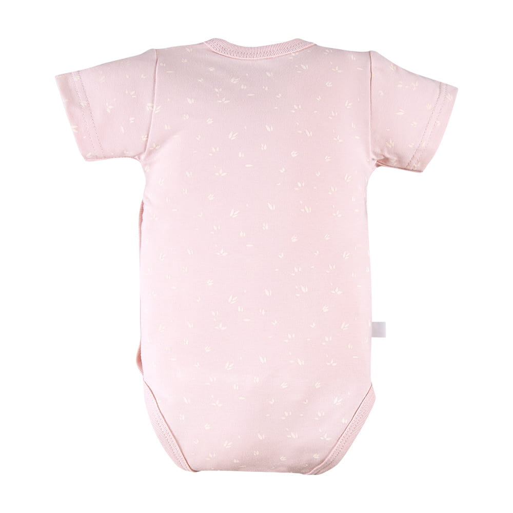 Rosa Baby-Wickelbody mit kurzen Ärmeln und zartem Blumenmuster aus der Petite-Kollektion ist ein praktisches und unverzichtbares Kleidungsstück für jedes Baby. Das dezente Muster verleiht dem Body einen niedlichen und mädchenhaften Charakter.