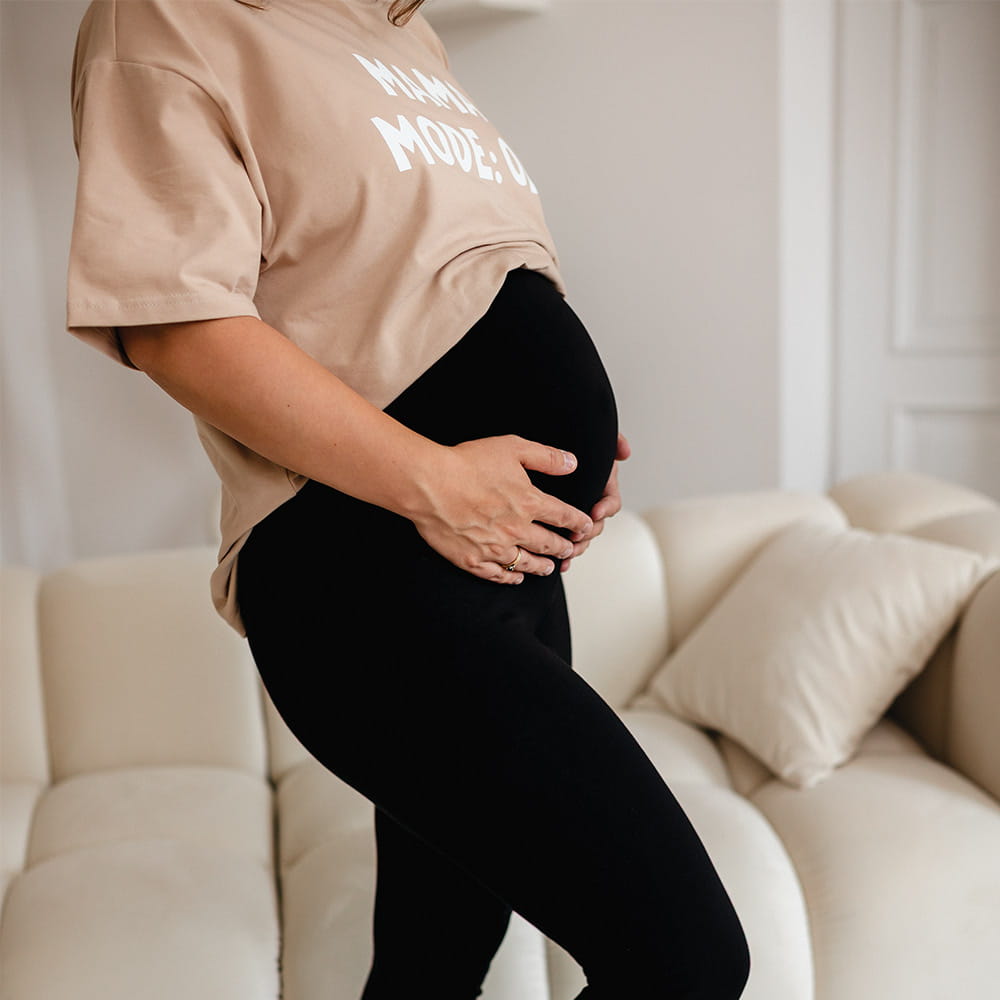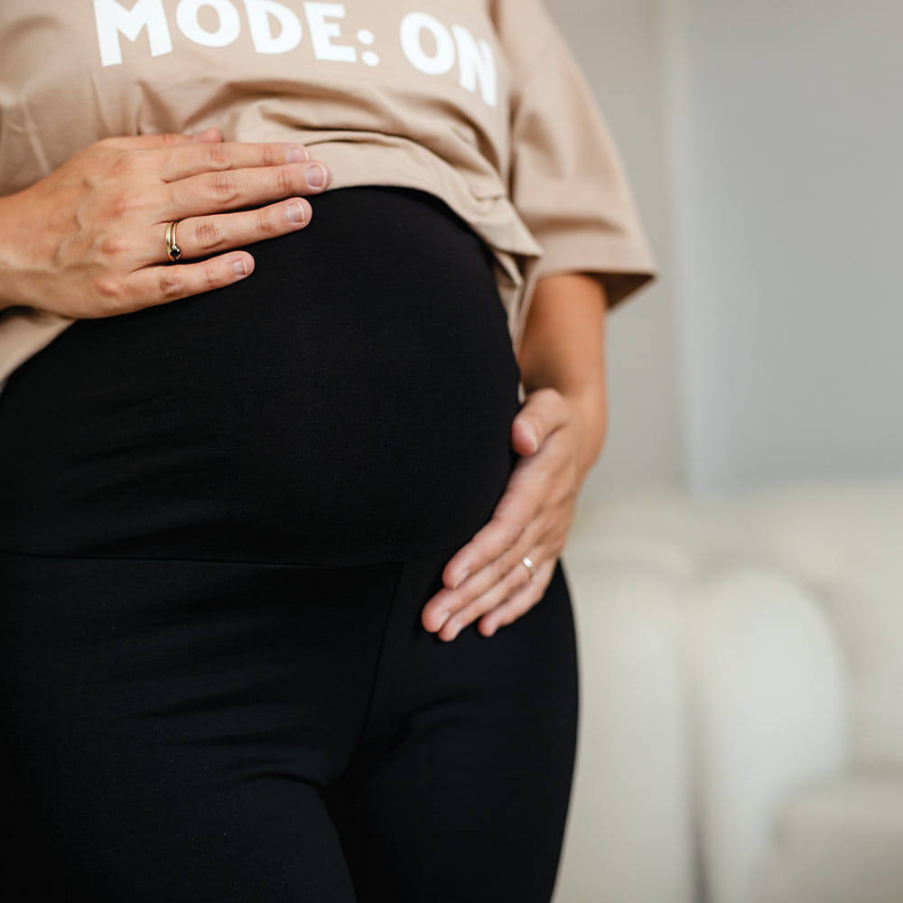 Schwarze Umstandsleggings | Eevi for Moms Die schwarzen Umstandsleggings von Eevi for Moms sind ein Must-Have in der Garderobe jeder werdenden Mutter. Sie bestehen aus elastischem und weichem Strickstoff (95 % Baumwolle, 5 % Elasthan) und passen sich perfekt an die sich verändernde Figur an, sodass sie den ganzen Tag über Komfort und Bewegungsfreiheit bieten. Warum sollten Sie sich für die Umstandsleggings von Eevi entscheiden? Farbe Schwarz – universell und stilvoll. Spezieller Schwangerschaftsschnitt – mit hohem Bund, der den Bauch umhüllt, ohne zu drücken. Natürliche Baumwolle – weich, atmungsaktiv und hautfreundlich. Elasthananteil – sorgt für Elastizität und bessere Passform. Ideal für den Alltag – zu Hause, bei der Arbeit und beim Spazierengehen. Produktmerkmale: Farbe: Schwarz Schnitt: , mit hoher Taille, die mit einem Gummiband endet Material: 95 % Baumwolle, 5 % Elasthan Pflege: Waschen bei 40 °C, auf der linken Seite bügeln, nicht im Trockner trocknen Herkunft: Polnisches Produkt Komfort in jeder Phase der Schwangerschaft Eevi for Moms ist eine Kollektion, die für den Komfort werdender Mütter entwickelt wurde. Die schwarzen Umstandsleggings bieten Halt und Bewegungsfreiheit von den ersten Wochen bis zu den letzten Tagen der Schwangerschaft – und sogar darüber hinaus.