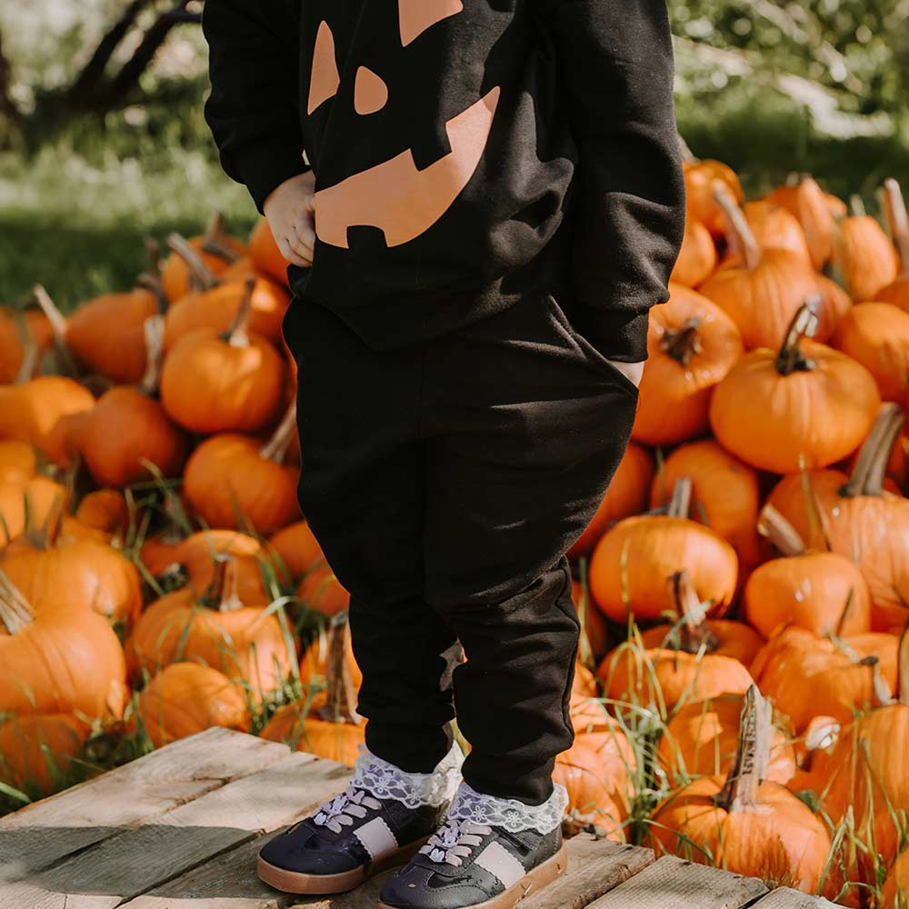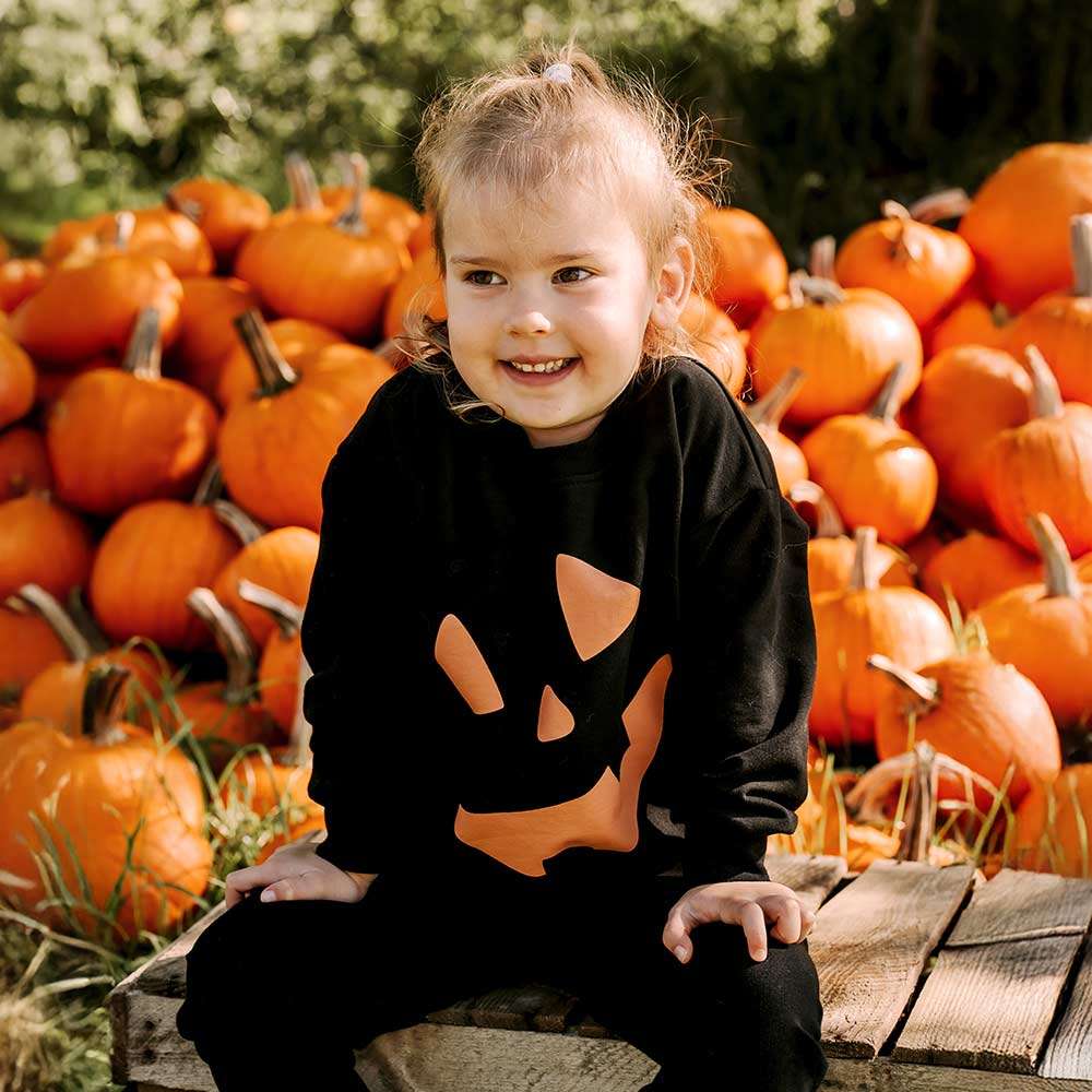 Schwarzer Kinder-Trainingsanzug mit gruseligem Gesicht – Kollektion Halloween