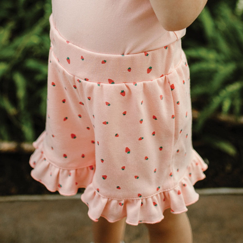 Shorts für Kinder in kleine korallenrote Erdbeeren