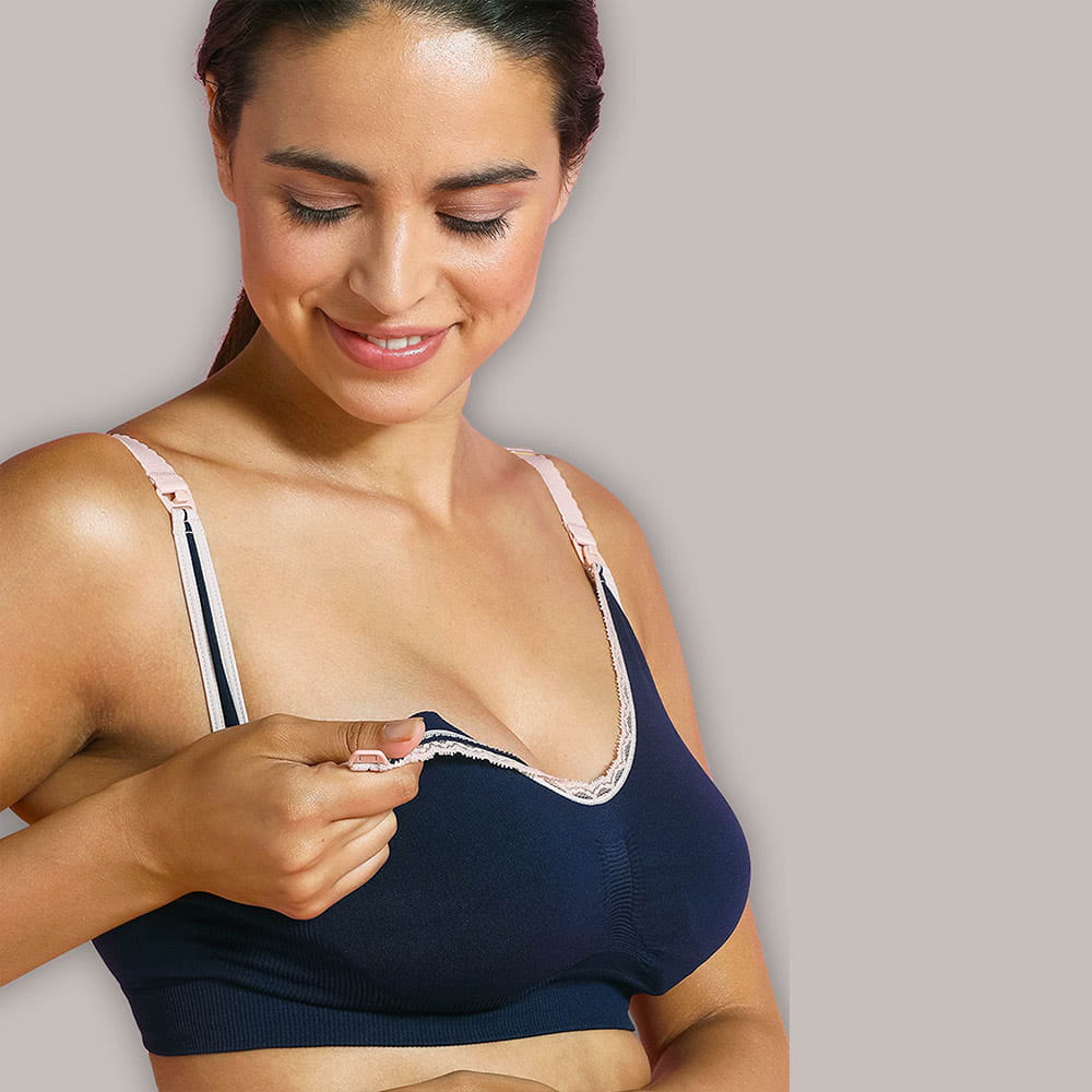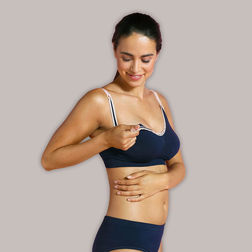 Der nahtlose Still-Büstenhalter ist ein zarter und bequemer Büstenhalter, der sich an die sich verändernde Körperform der werdenden Mutter anpasst. Der leicht zu öffnende Verschluss legt die gesamte Brust frei und maximiert so den Kontakt zwischen Mutter und Kind während des Stillens. Praktisch: Einfaches Freilegen der Brust dank zusätzlichem Verschluss vorne. Nächtliches Stillen: Sehr weiches und elastisches Material. Einfaches Stillen. Sanft: Das besonders weiche Material sorgt dafür, dass nichts drückt oder reibt. Passform: Die mitgelieferte Verlängerung für den BH erhöht die Verstellbarkeit. Bequem: Keine starren Bügel, keine störenden Nähte. Der Still-BH ist nach O-ECO TEX STANDARD 100 zertifiziert. Zusammensetzung: 91 % POLYAMID, 9 % ELASTHAN
