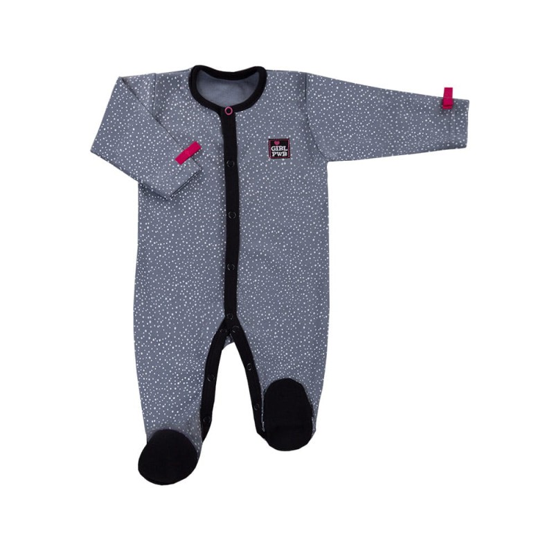 Strampler aus der Kollektion „Power“, genäht aus weichem und angenehmem Stoff. Auf der Vorderseite des Stramplers befindet sich ein kleines Etikett, das von innen gesichert ist, damit es die empfindliche Haut des Kindes nicht reizt. An den Ärmeln des Stramplers befinden sich niedliche rosa Schleifen. Der Schnitt ermöglicht ein vollständiges Aufknöpfen, wodurch das Kleidungsstück funktional und bequem ist. Mit weicher, kontrastierender schwarzer Paspelierung. Die Ärmel sind mit Bündchen abgeschlossen. Baby-Strampler eignen sich ideal für die ersten Lebensmonate des Kindes. Sie können als Schlafanzug oder Ausgehkleidung verwendet werden. Die Babykleidung von Eevi wird mit Sorgfalt für den Komfort und die Sicherheit der Haut Ihres Kindes hergestellt. Warum vertrauen wir der Marke Eevi seit Jahren so sehr? Die Produkte werden mit Präzision und unter Verwendung von Materialien höchster Qualität genäht. Bei der Herstellung von Babykleidung verwenden wir ausschließlich ökologische Farben, die für die Haut von Kindern und Babys unbedenklich sind. Die Stickereien in unseren Produkten sind von innen gesichert, damit sie die empfindliche Haut des Kindes nicht reizen. Alle Druckknöpfe und Verschlüsse, die wir in unseren Produkten verwenden, sind nickelfrei. Der von uns angebotene Strampler ohne Füße ist zertifiziert: „Sicher für Kinder” „Sicher für Säuglinge” Das Garn, aus dem wir unsere Baumwolle selbst herstellen, ist nach dem OEKO-TEX 100 Standard zertifiziert. Zusammensetzung: 100 % hochwertige Baumwolle Alter des Kindes: von 0 bis 12 Monaten Produkt: 100 % POLNISCH