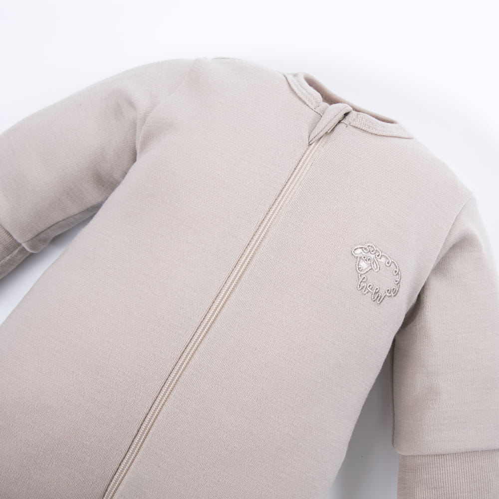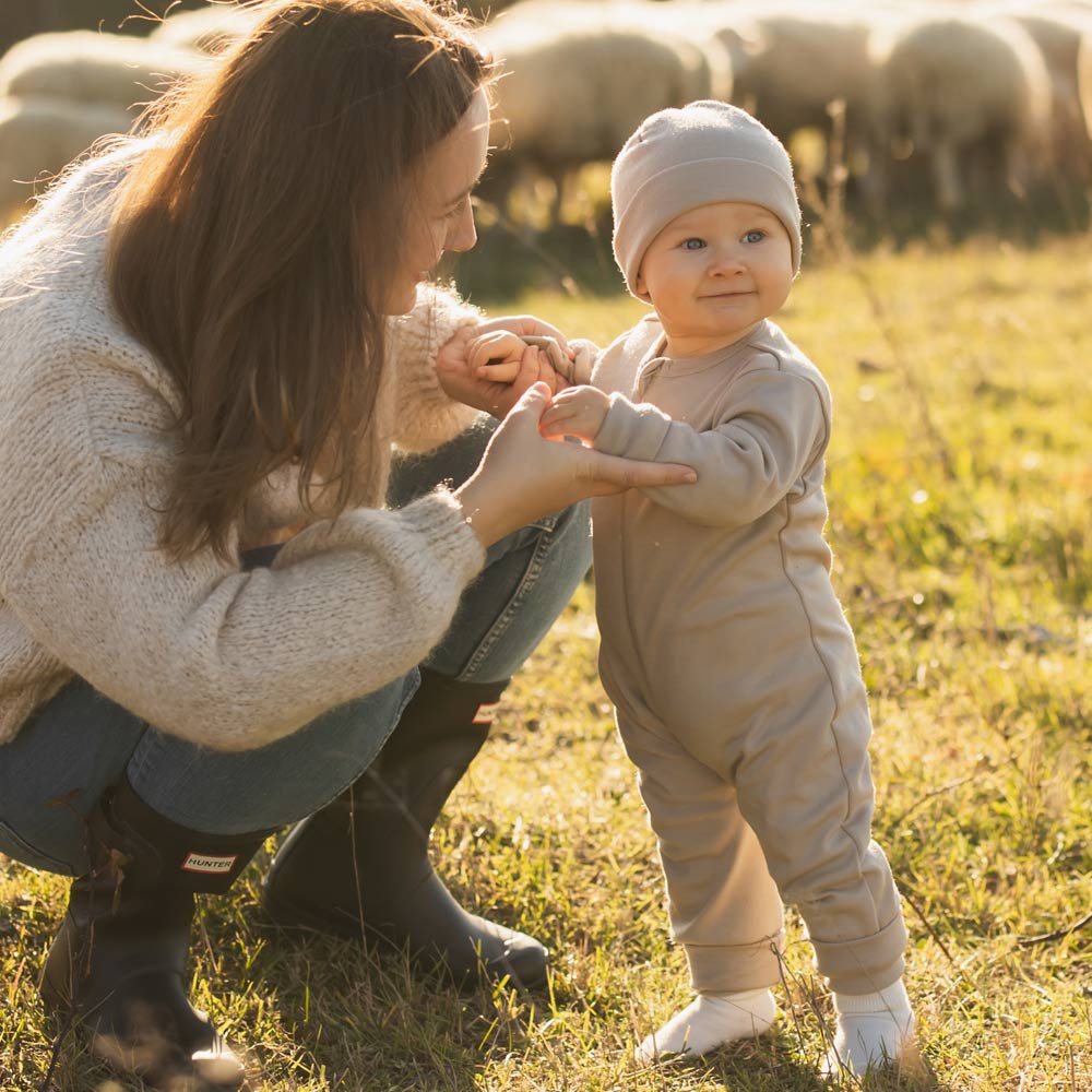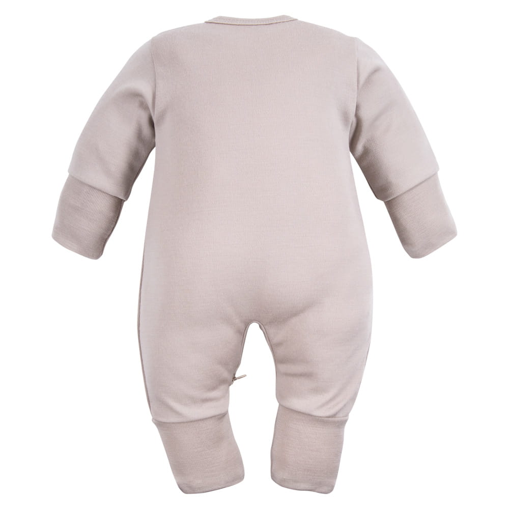 Beiger Strampler für Kinder aus Merinowolle. Der Strampler ist aus hochwertiger Merinowolle gefertigt, die die Temperatur perfekt reguliert und sowohl an kühleren als auch an wärmeren Tagen für Komfort sorgt. Dank seiner natürlichen atmungsaktiven und feuchtigkeitstransportierenden Eigenschaften ist das Material ideal für die empfindliche Haut des Kindes. Der Strampler ist mit einem doppelseitigen Reißverschluss ausgestattet, der das schnelle An- und Ausziehen des Babys erleichtert, und die verstellbaren Bündchen ermöglichen eine perfekte Anpassung an das wachsende Kind. Alter des Kindes: Von 0 Monaten bis 3 Jahren Gewicht: 265 Material: 100 % Merinowolle Struktur/Materialart: Merinowollstrick Pflegehinweise: Handwäsche oder Maschinenwäsche im Wollwaschgang, max. 30 °C, nicht im Wäschetrockner trocknen Farbe: Beige Ärmel: Lange Ärmel mit verstellbaren Bündchen Verschluss: Zweiwege-Reißverschluss für schnelles und bequemes An- und Ausziehen Verarbeitung: Zarte und weiche Säume für hohen Tragekomfort Herkunft: 100 % polnisches Produkt Die Babykleidung von Eevi wurde mit Blick auf den Komfort und die Sicherheit von Kindern entworfen. Merinowolle ist die ideale Wahl, da sie weich und antibakteriell ist und sich zu jeder Jahreszeit perfekt eignet, um eine optimale Temperatur und hohen Tragekomfort zu gewährleisten. Warum lieben Mütter die Produkte von Eevi? Wir nähen unsere Strampler mit größter Sorgfalt und verwenden dabei ausschließlich natürliche, sichere Materialien von höchster Qualität. Merinowolle sorgt für Weichheit und natürlichen Schutz für die empfindliche Haut Ihres Kindes. Der doppelseitige Reißverschluss erleichtert das schnelle und problemlose Wechseln der Windeln und das Anziehen des Babys. Dank der verstellbaren Bündchen „wächst” der Strampler mit dem Kind mit. Die Produkte enthalten weder Nickel noch andere schädliche Substanzen und gewährleisten somit die Sicherheit des Kindes.