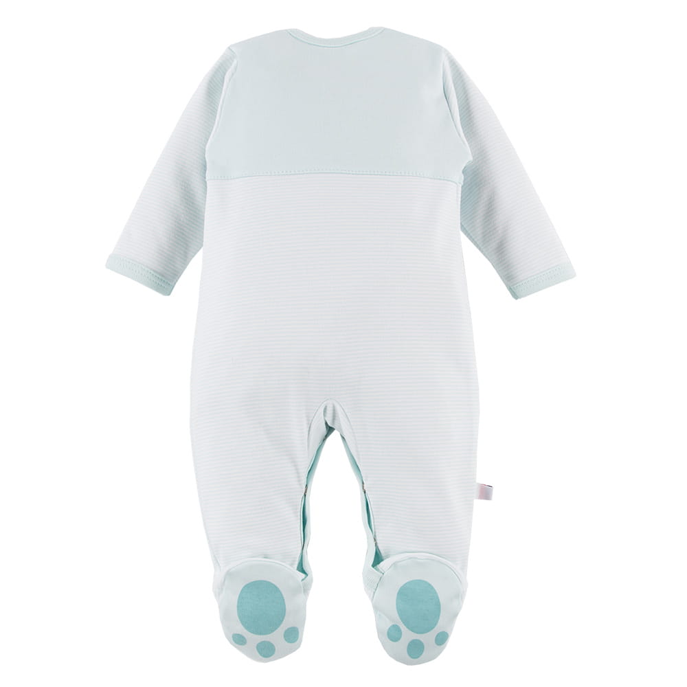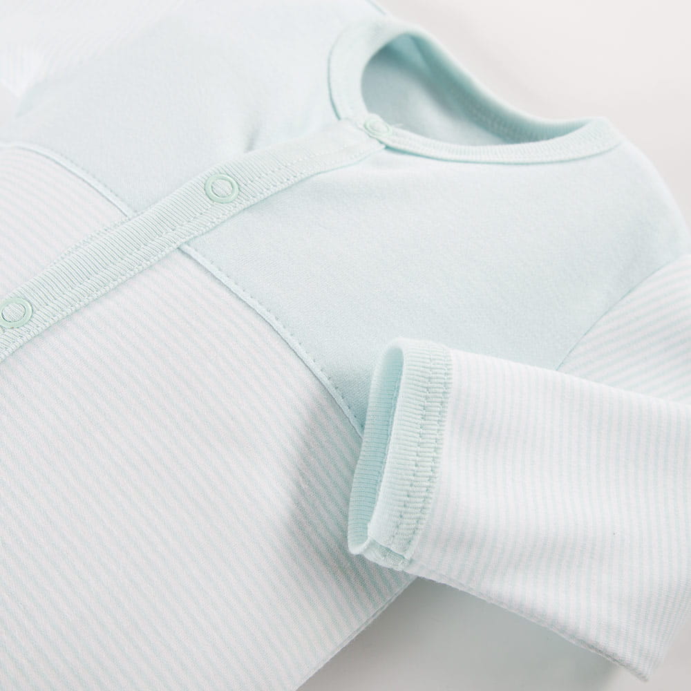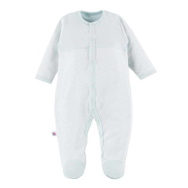 Strampler für Kinder mit weißen und mintfarbenen Streifen