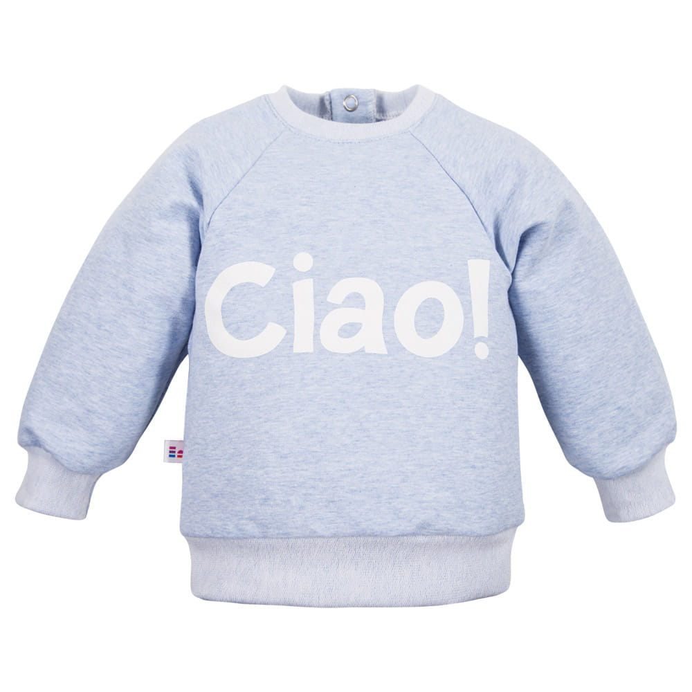 Oversize-Sweatshirt aus Sweatshirtstoff mit der Aufschrift „Ciao”. Das Kindersweatshirt ist aus Sweatshirtstoff gefertigt. Das Sweatshirt ist ein Oversize-Modell aus der limitierten Kollektion LOVE. Alter des Kindes: Von 3 Monaten bis 4 Jahren Kollektion: Hello World Material: 100 % hochwertige Baumwolle Struktur/Materialart: Strickware Pflegehinweise: Maschinenwäsche bei 40 °C, nicht im Wäschetrockner trocknen Muster: Farbe Blau – meliert Ärmel: Langarm Verschluss: Mit Druckknöpfen bis Größe 80 Verarbeitungsdetails: weicher Bündchen Herkunft: POLNISCHES PRODUKT Zertifikate: „Sicher für Kinder”, „Sicher für Babys” Die Babykleidung von Eevi wird mit Sorgfalt hergestellt, um den Komfort und die Sicherheit der Haut Ihres Kindes zu gewährleisten. Warum vertrauen wir der Marke Eevi seit Jahren so sehr? Die Produkte werden mit Sorgfalt und unter Verwendung von Materialien höchster Qualität genäht. Bei der Herstellung von Babykleidung verwenden wir ausschließlich ökologische Farben, die für die Haut von Kindern und Babys unbedenklich sind. Die Stickereien in unseren Produkten sind von innen gesichert, damit sie die empfindliche Haut des Kindes nicht reizen. Alle Druckknöpfe und Verschlüsse, die wir in unseren Produkten verwenden, sind nickelfrei.