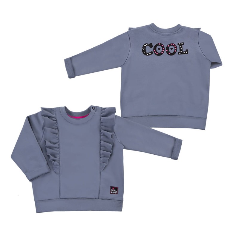 Sweatshirt aus der Kollektion „Power” aus weichem und angenehmem Sweatshirtstoff. Auf der Vorderseite des Sweatshirts befinden sich hübsche, unversäuberte Rüschen. Auf der Rückseite des Sweatshirts befindet sich ein Schriftzug. Zu öffnen bis Größe 80. Das Sweatshirt ist mit einem weichen Bündchen versehen. Das Sweatshirt wird an der Schulter mit einem Druckknopf geöffnet. Das Sweatshirt ist ideal für Spaziergänge und zum Spielen auf dem Spielplatz. Die Babykleidung von Eevi wird mit Sorgfalt für den Komfort und die Sicherheit der Haut Ihres Kindes hergestellt. Warum vertrauen wir der Marke Eevi seit Jahren so sehr? Die Produkte werden mit Sorgfalt und unter Verwendung von Materialien höchster Qualität genäht. Bei der Herstellung von Babykleidung verwenden wir ausschließlich ökologische Farben, die für die Haut von Kindern und Babys unbedenklich sind. Die Stickereien in unseren Produkten sind von innen gesichert, damit sie die empfindliche Haut des Kindes nicht reizen. Alle Druckknöpfe und Verschlüsse, die wir in unseren Produkten verwenden, sind nickelfrei. Das Garn, aus dem wir unsere Baumwolle selbst herstellen, ist nach dem OEKO-TEX 100 Standard zertifiziert. Zusammensetzung: 100 % hochwertige Baumwolle Alter des Kindes: von 6 Monaten bis 4 Jahren Produkt: 100 % POLNISCH